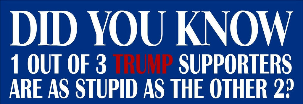 ANTI TRUMP Bumper Sticker or Magnet PAIR - DID YOU KNOW Trump Supporters Decal