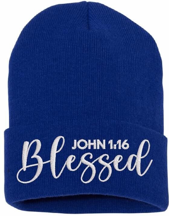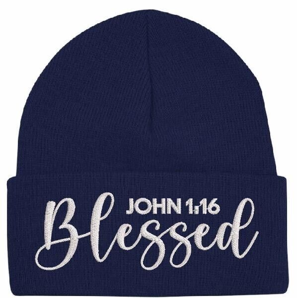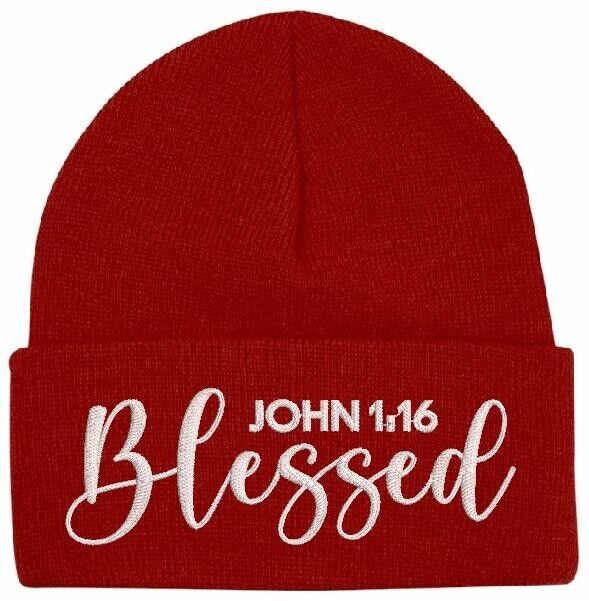 Beanies for Men BLESSED JOHN 1:16 Christ Church Faith Christian Winter Hat
