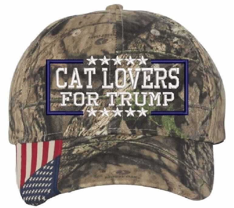 Cat Lovers for Trump Embroidered Hat Mossy Oak CWF305 Adjustable Hat MAGA Navy