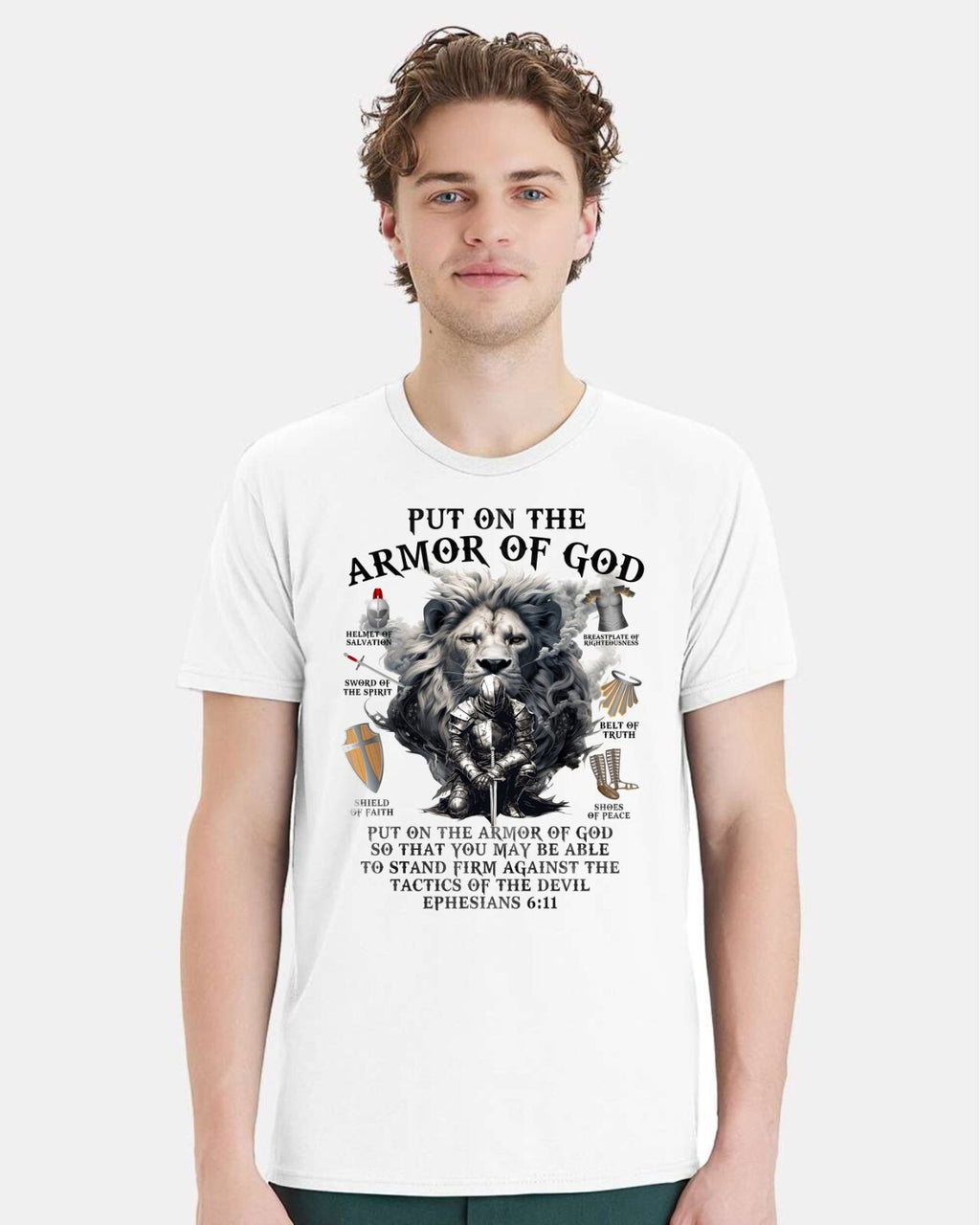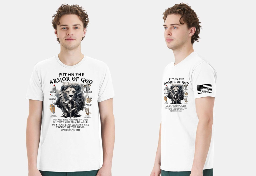 Christian Mens T-shirt "Armor of God Lion Sword Black Short Sleeve Jesus Shirt