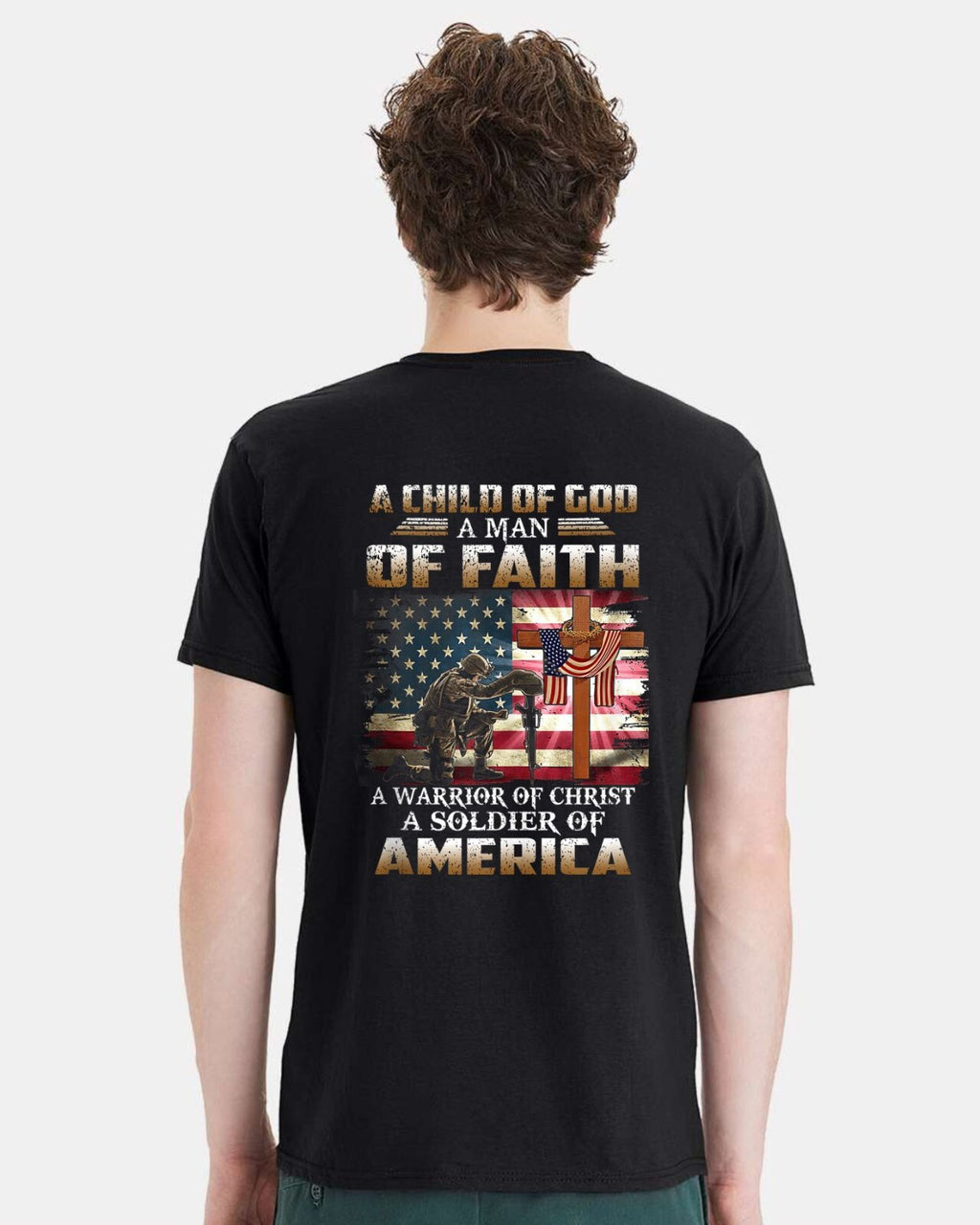 Christian Mens T-shirt Child of God Man of Faith America USA Short Sleeve Shirt