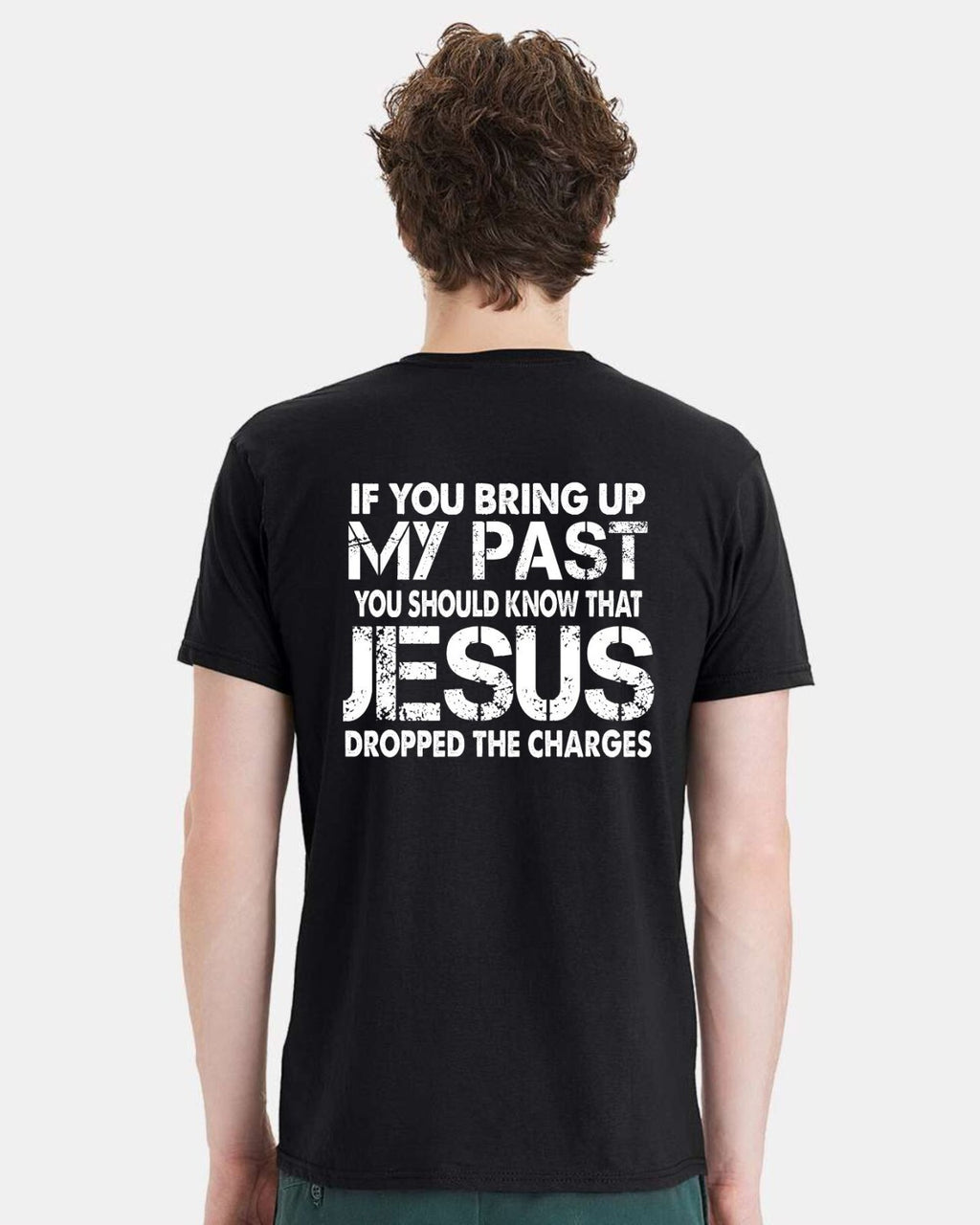 Christian Mens T-shirt "Jesus Dropped the Charges Black Short Sleeve Jesus Shirt