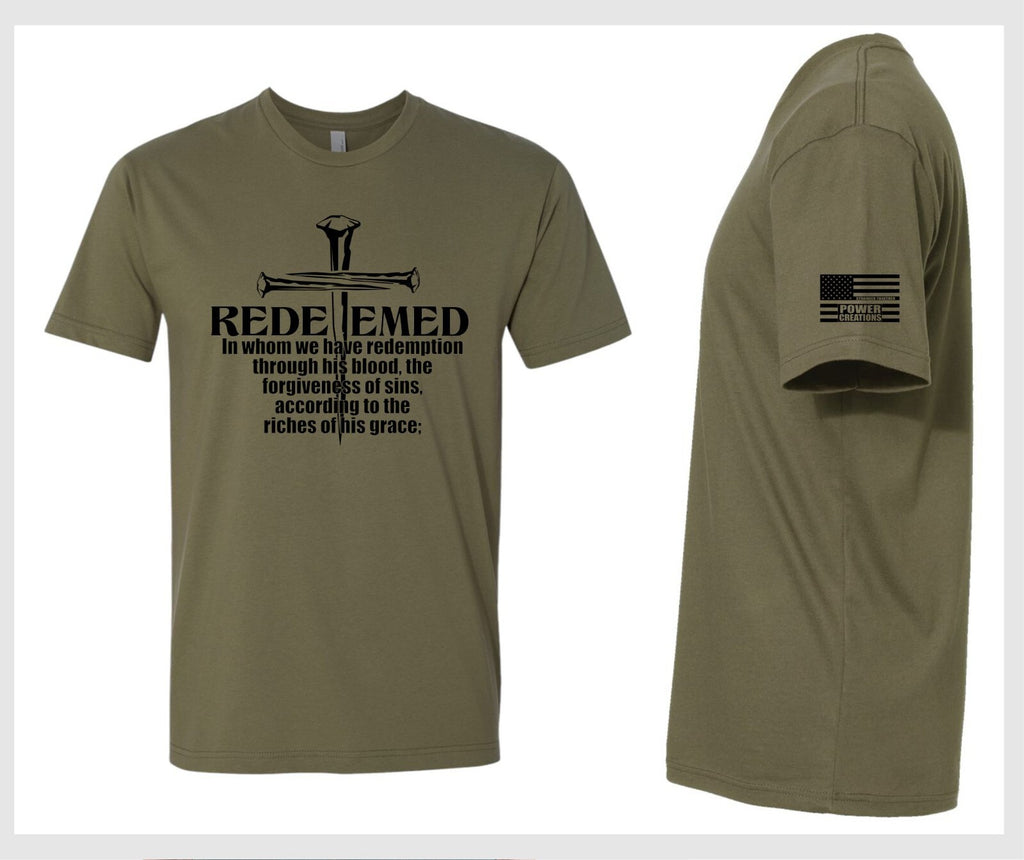 This is the REDEEMED Short Sleeve Black T-shirt. Each shirt has the design printed on the front and has the Power Creations Stronger Together flag on the side sleeve. This shirt is available is sizes from Small through 3X.