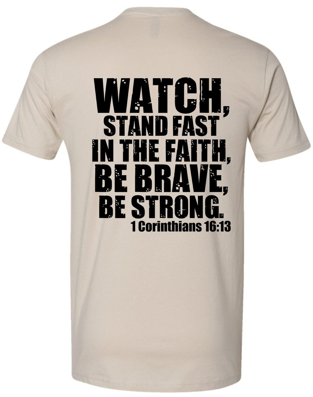 Christian Men's T-shirt Stand Fast in Faith Watch Be Strong Inspirational Tee