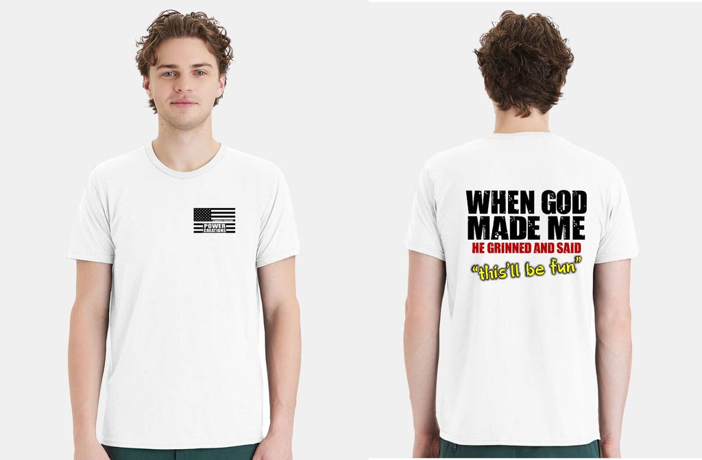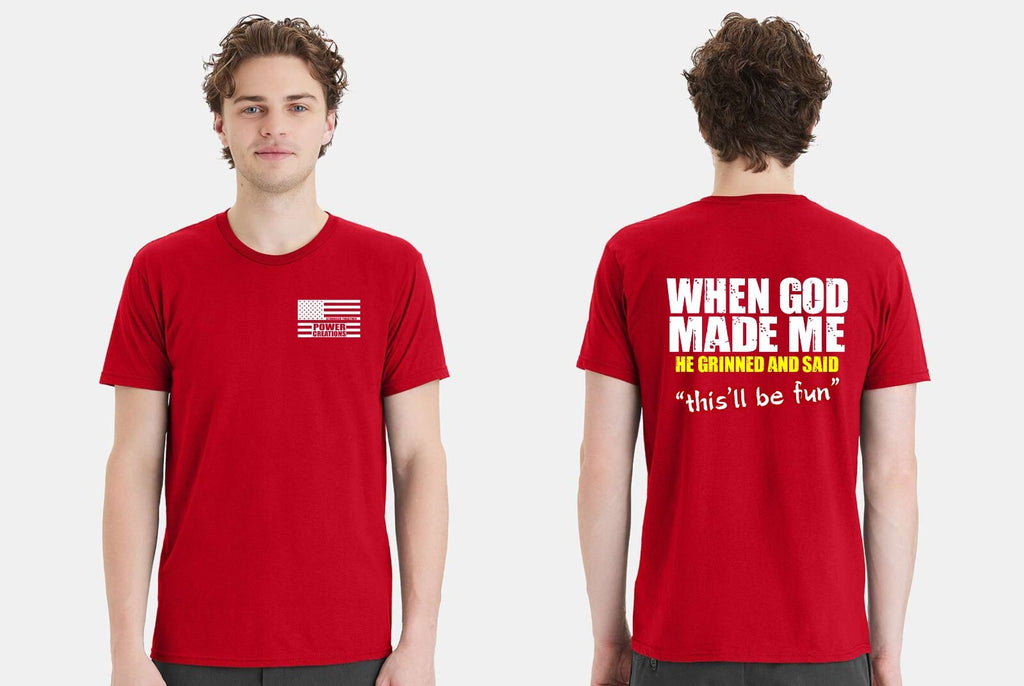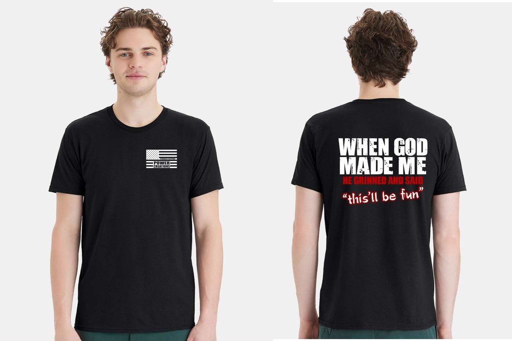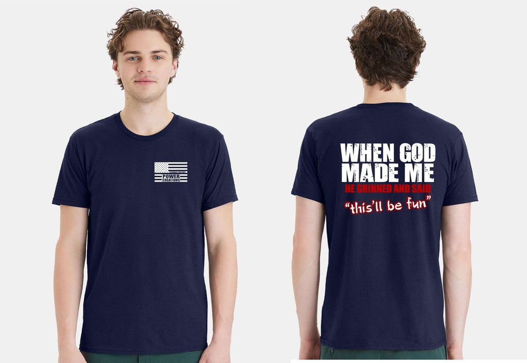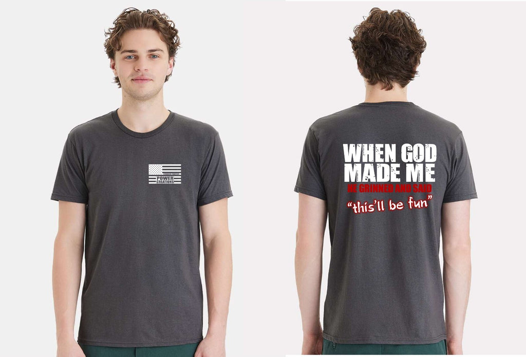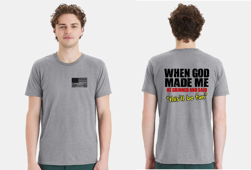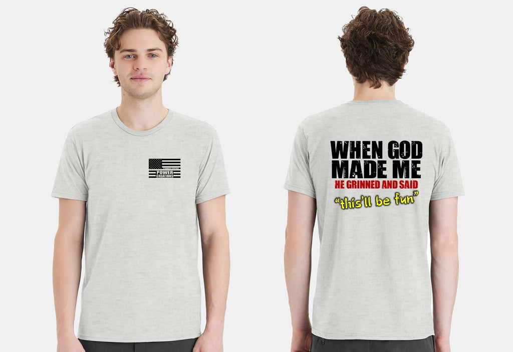 Christian Mens Tshirt When God Made Me he said "This'll Be Fun Christian Tshirt