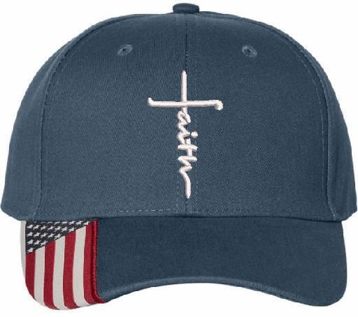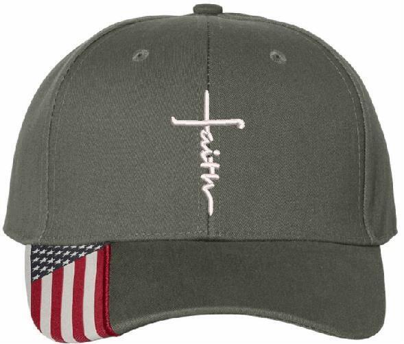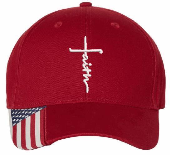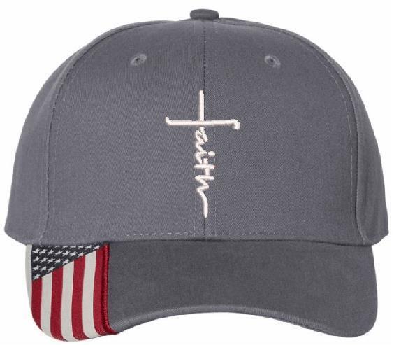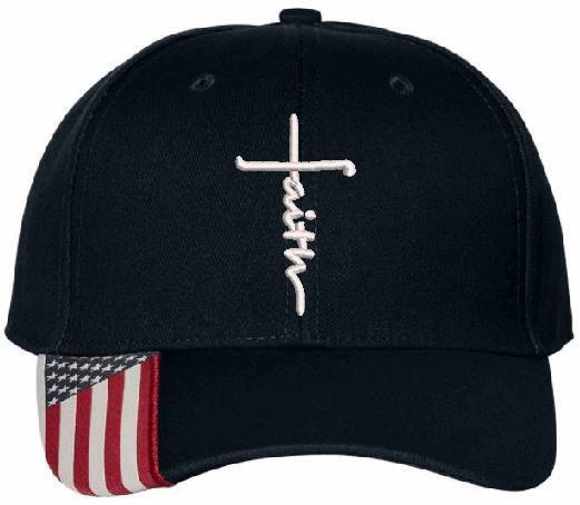 Faith Hat - Embroidered USA300 Adjustable hat w/ flag brim Faith Jesus Christ