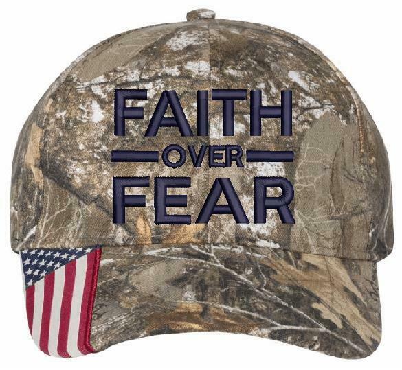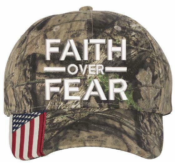 Faith Over Fear Embroidered CWF305 Mossy/Edge Adjustable Hat with Flag Brim