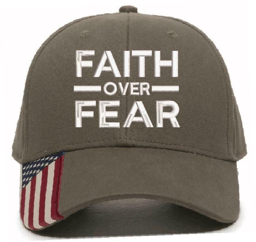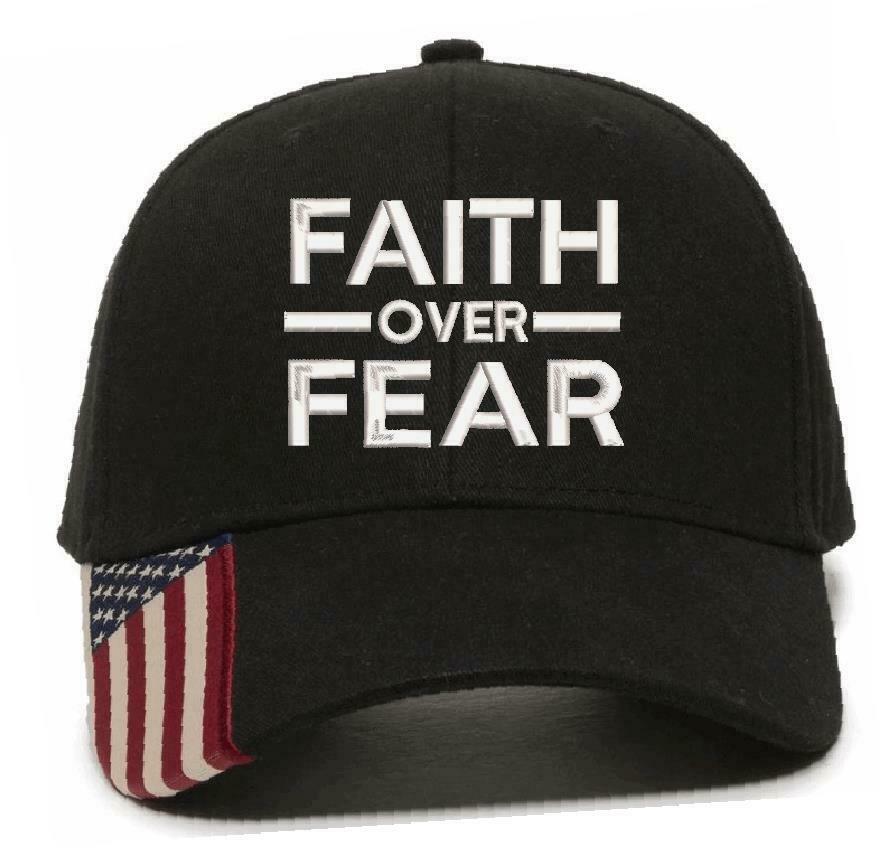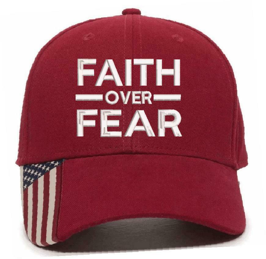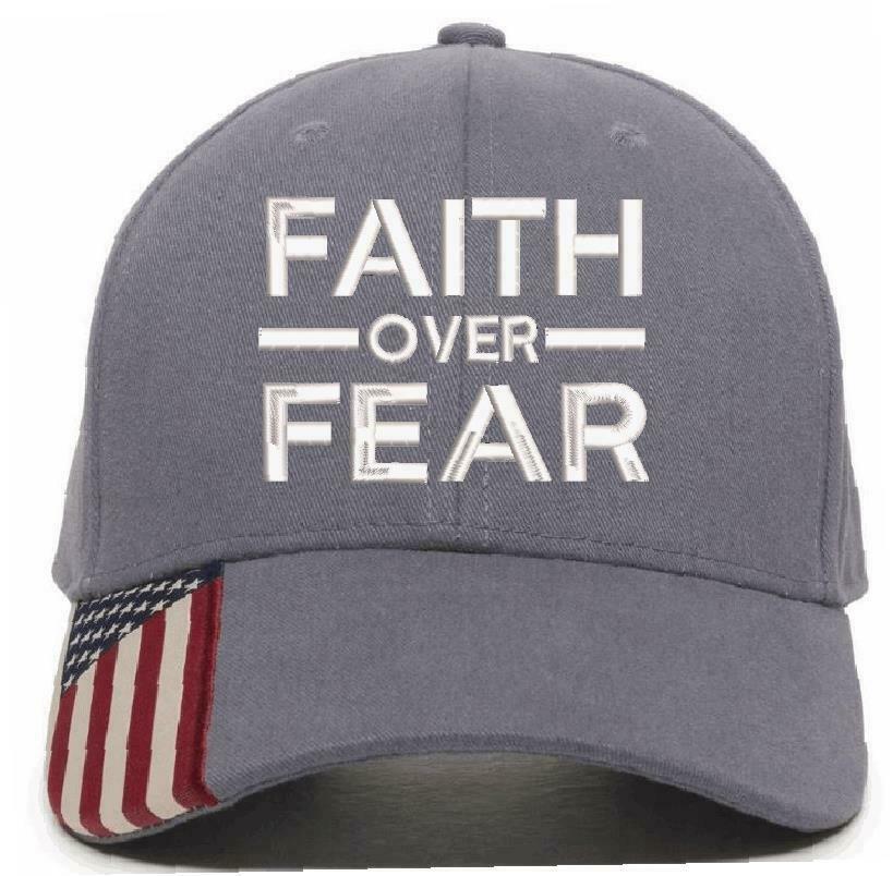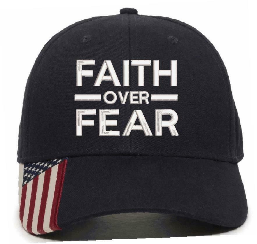 Faith Over Fear Embroidered USA-300 Adjustable Hat with Flag Brim - Var. Colors