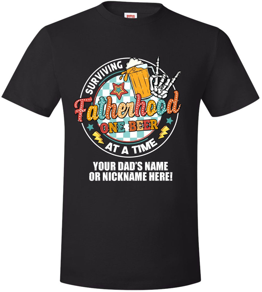 This listing is for one of our custom printed Fathers Day T-shirts. Each Tshirt has the design printed on the front and gives you the opportunity to put your dad's name or nickname below the design.