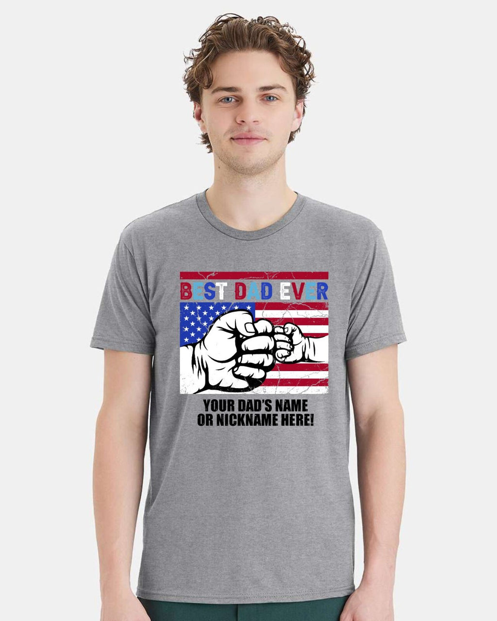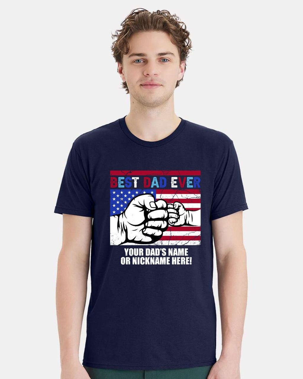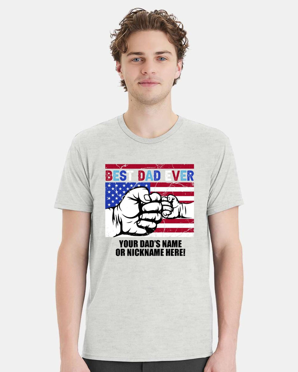 Fathers Day Tshirt - Best Dad Ever USA Flag with YOUR DAD'S NAME Printed Shirt