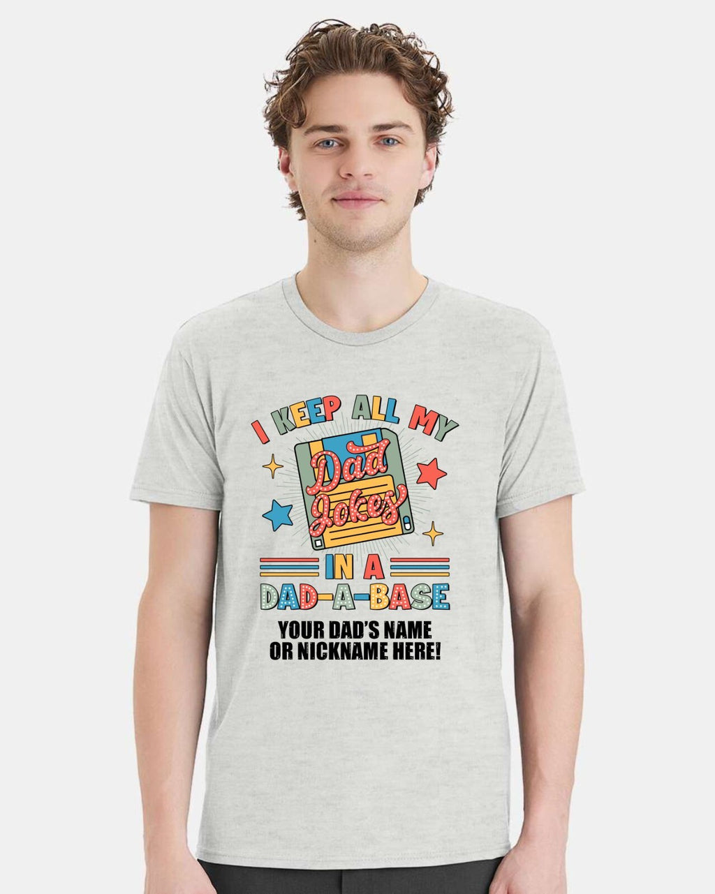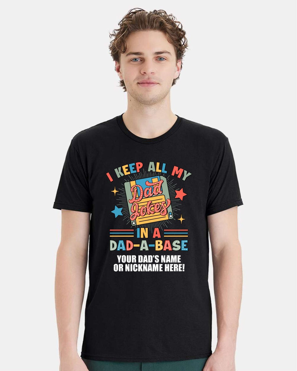 Fathers Day Tshirt Dad Jokes in a Dad a Base with YOUR DAD'S NAME Printed Shirt