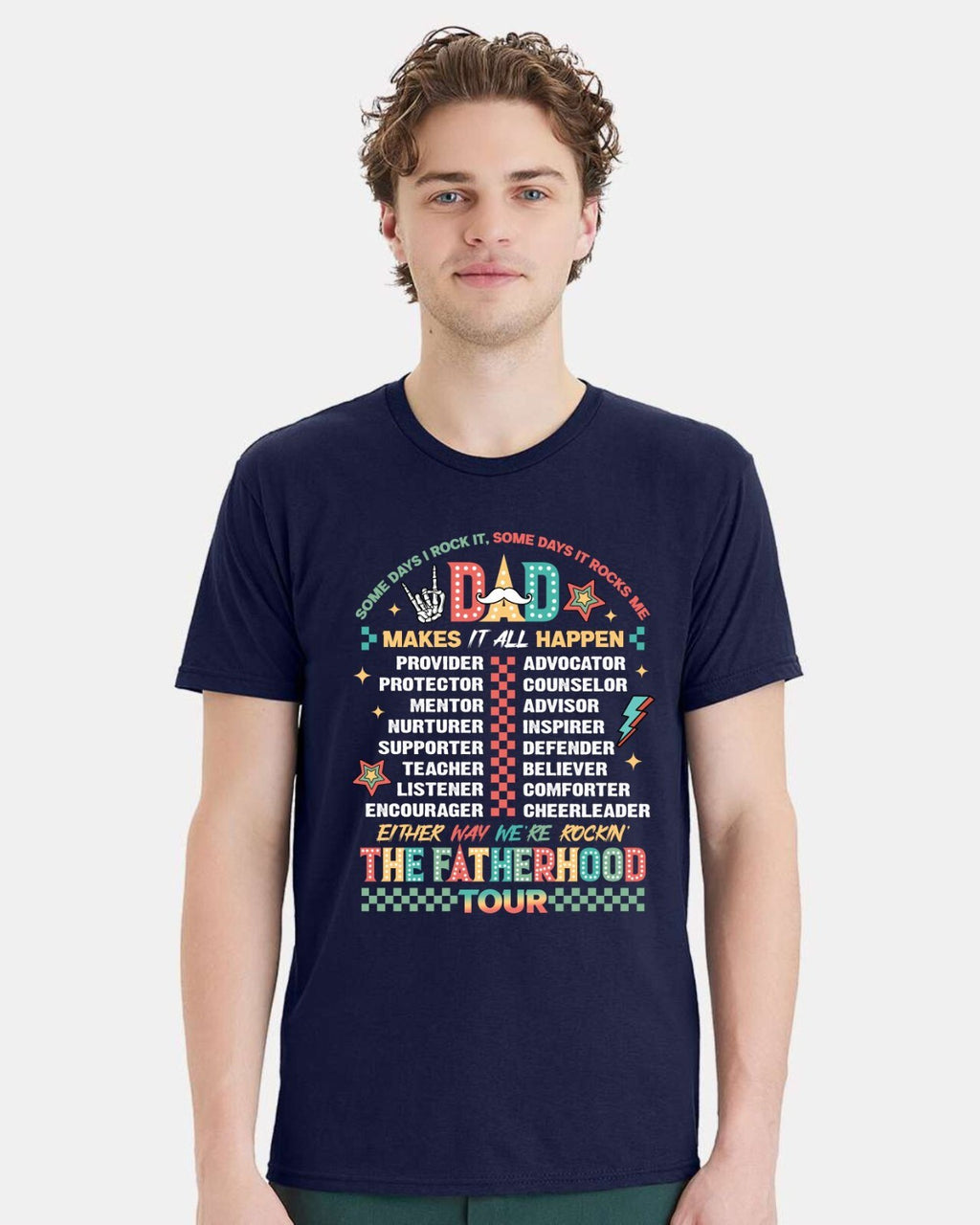 Fathers Day Tshirt - Dad Makes it all Happen Fatherhood Printed Dad Gift Tshirt