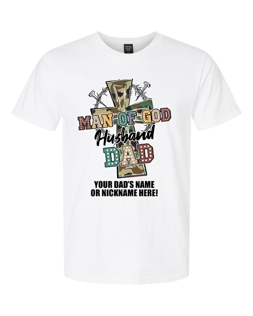 This listing is for one of our custom printed Fathers Day T-shirts. Each Tshirt has the design printed on the front and gives you the opportunity to have your dad's name or nickname printed under the design!