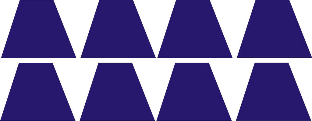 This is a collection of reflective fire helmet trapezoid decals. Each set comes with 8 trapezoids and they are made from the best reflective material on the market. Just peel and stick. Dimensions of each trapezoid is 1.75" from top to bottom and 2.25 wide from the farthese point left to right.