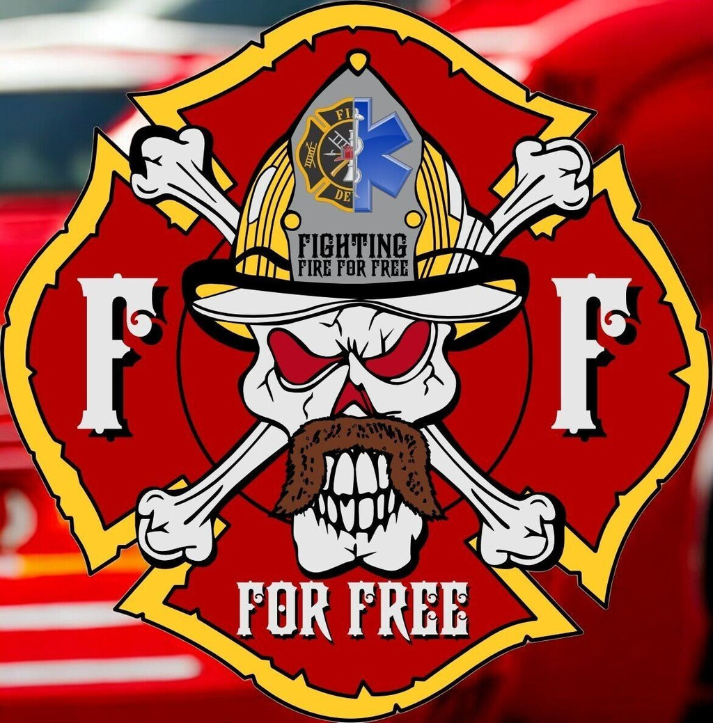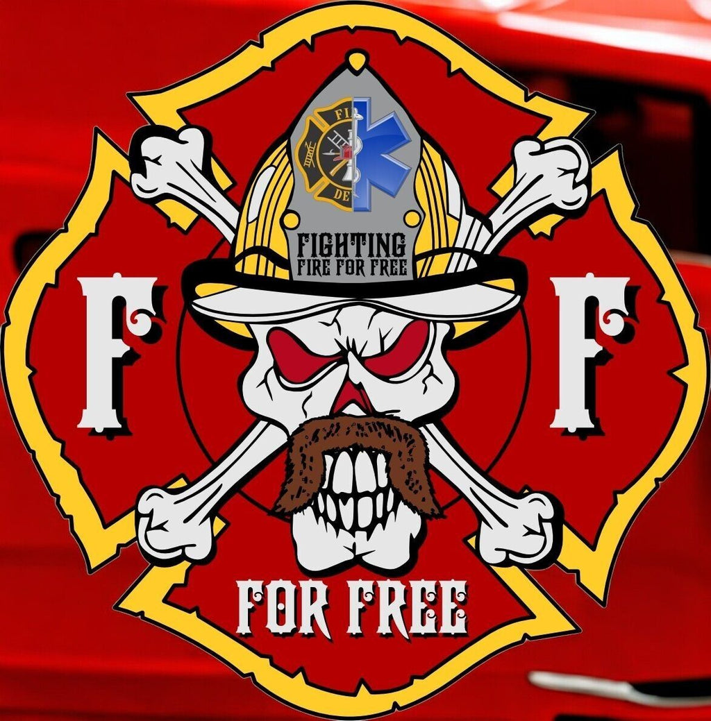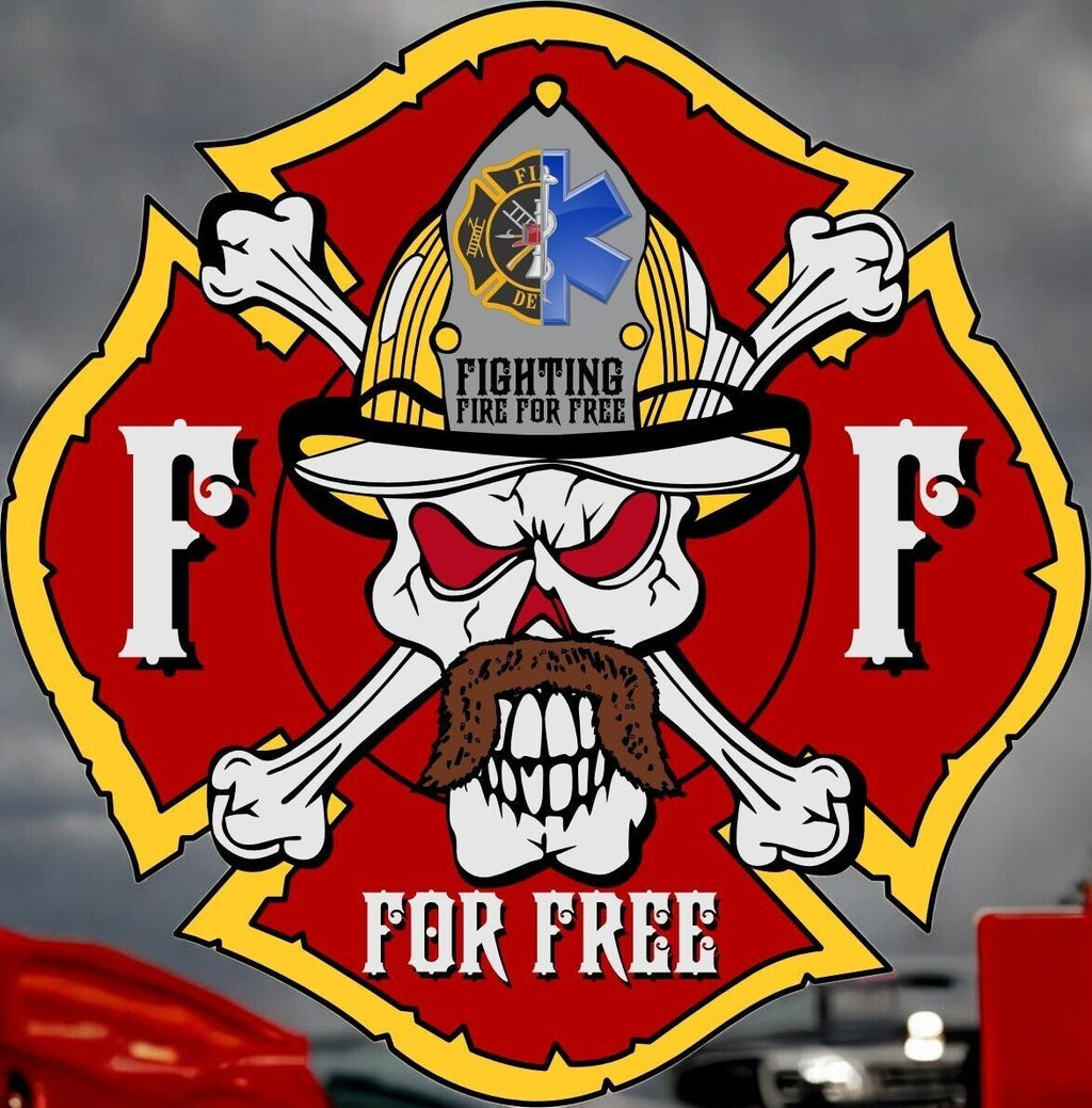 Firefighter Sticker - Fighting Fire For Free Maltese Cross Decal Volunteer Fire
