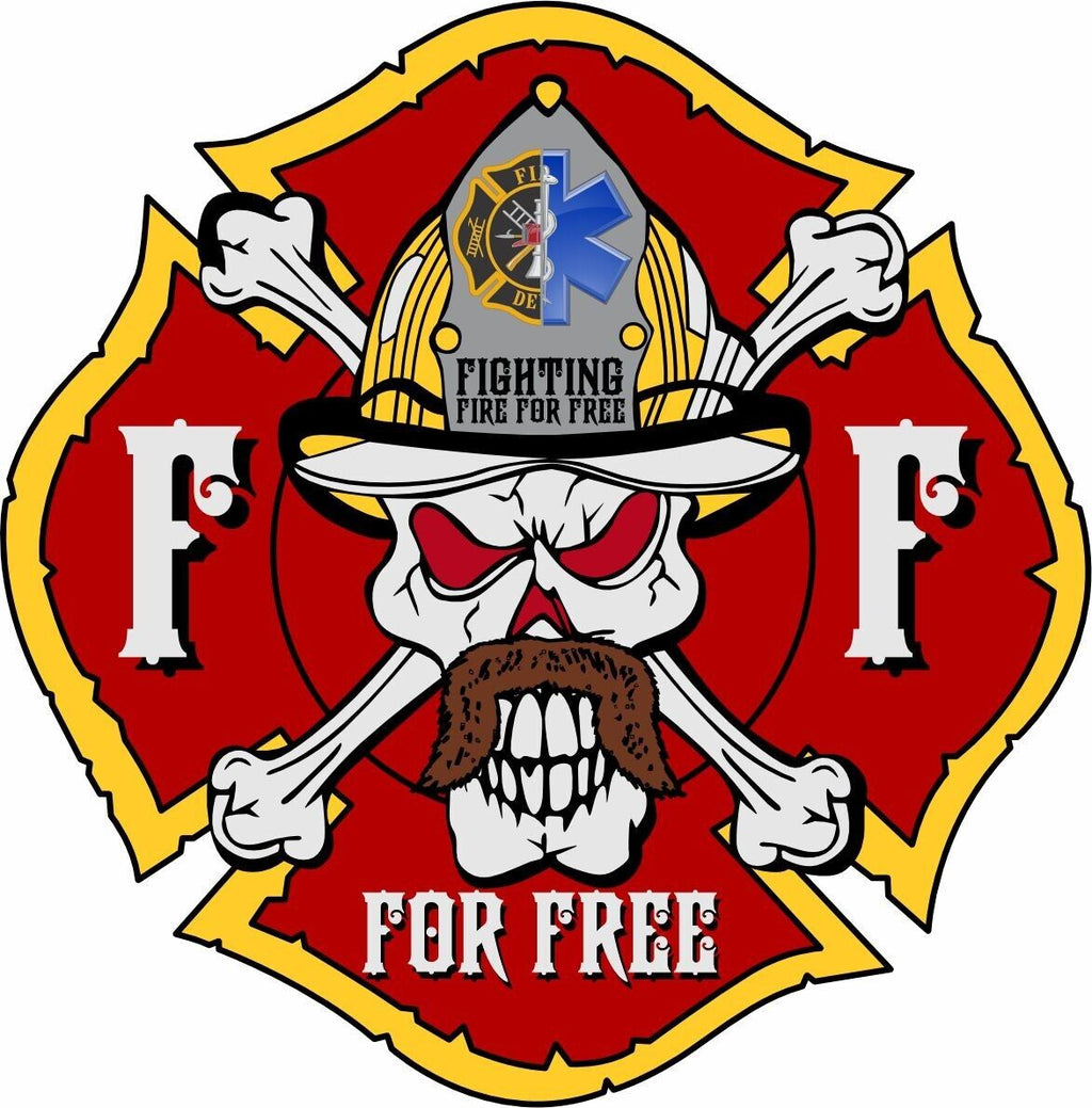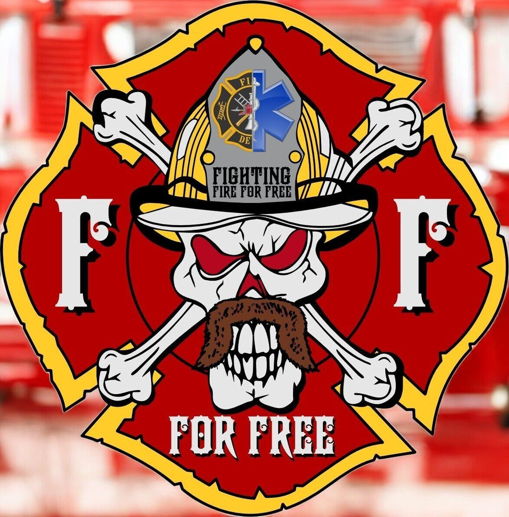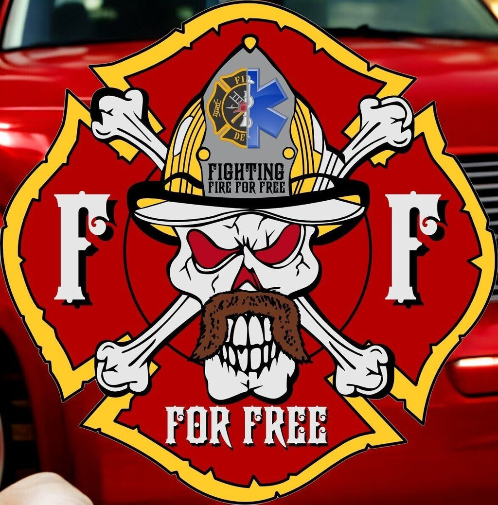 Firefighter Sticker - Fighting Fire For Free Maltese Cross Decal Volunteer Fire
