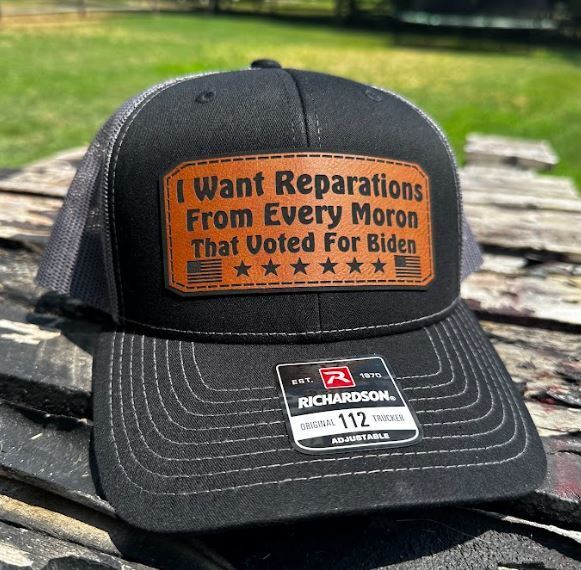 I want reparations from anyone that voted for Biden Leather Badge Hat Char/Black