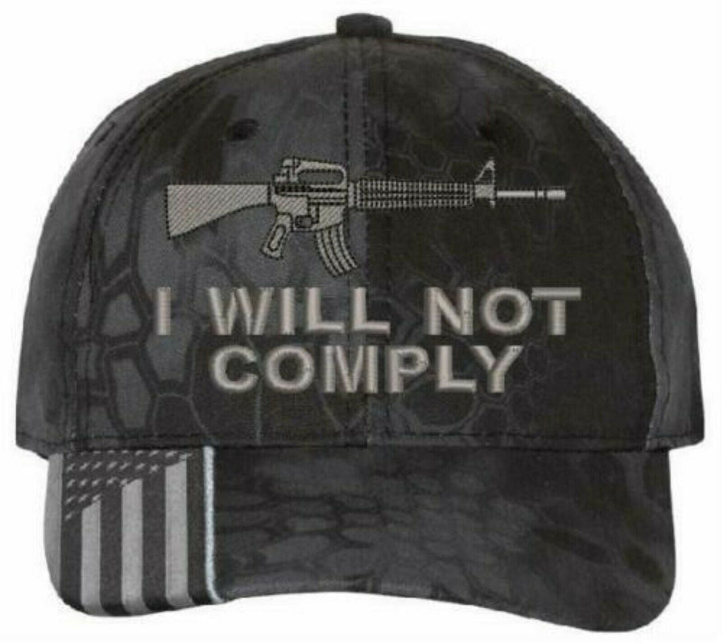 I WILL NOT COMPLY HAT with AK47 AR15 Gun Embroidered Adjustable Hat-Various Hats