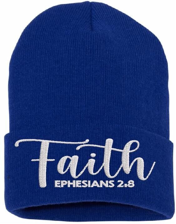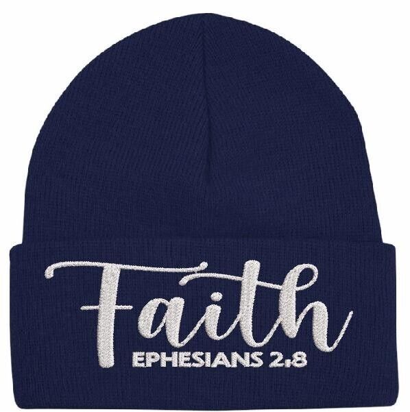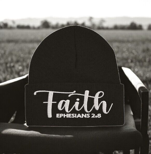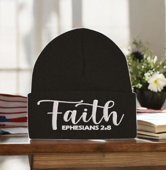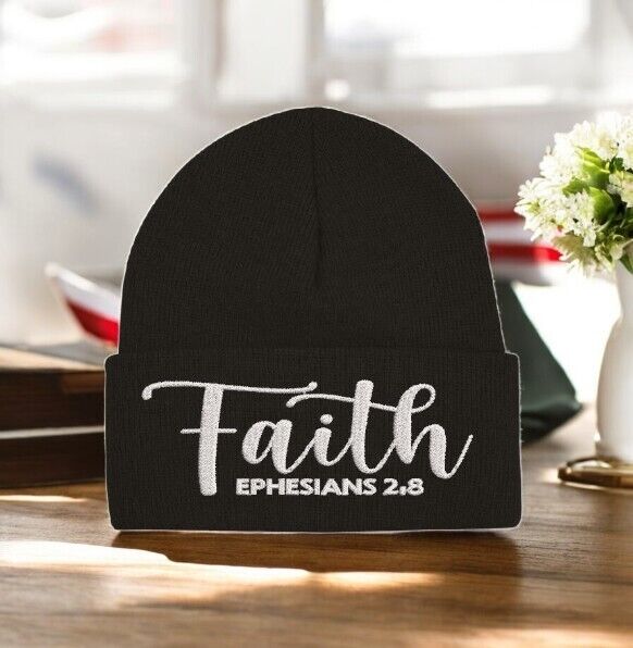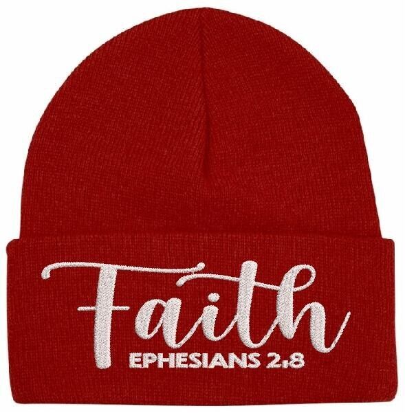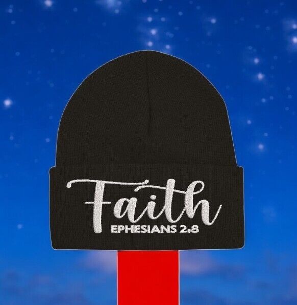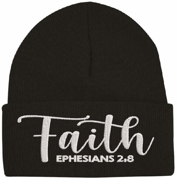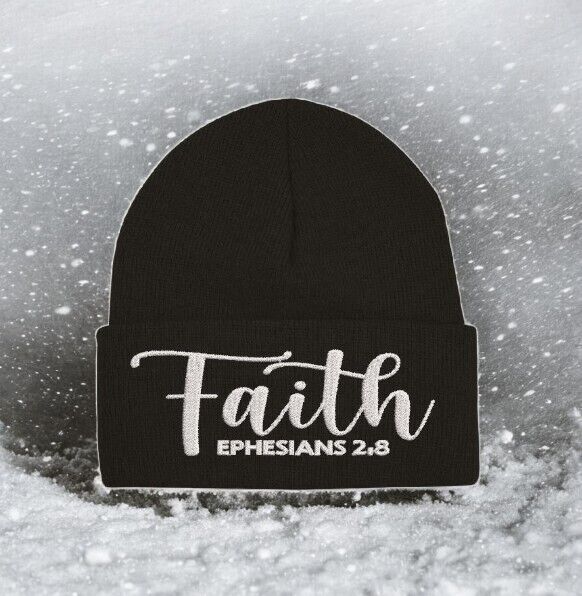 Jesus Christ Winter Beanie Hat FAITH EPHESIANS 2:9 Embroidered Winter Beanie Hat