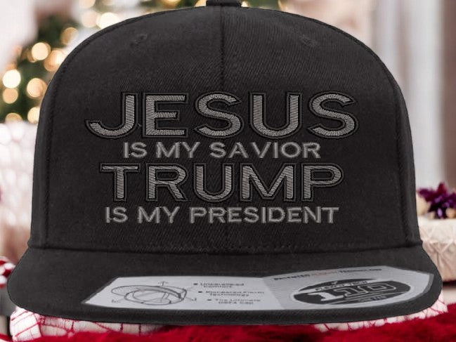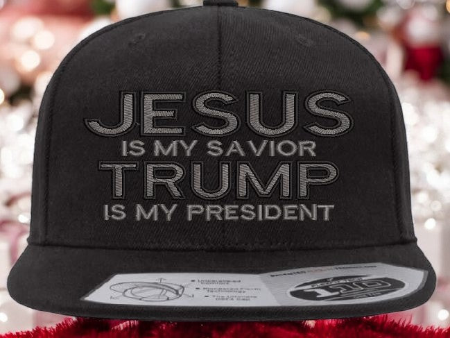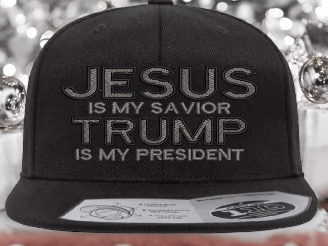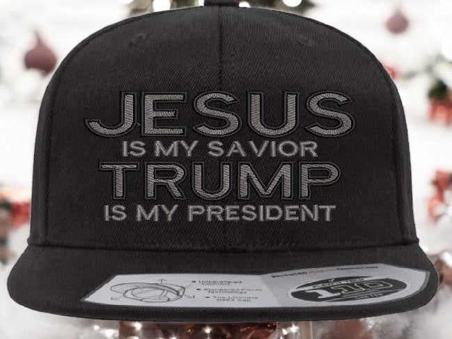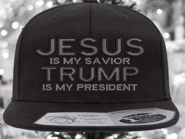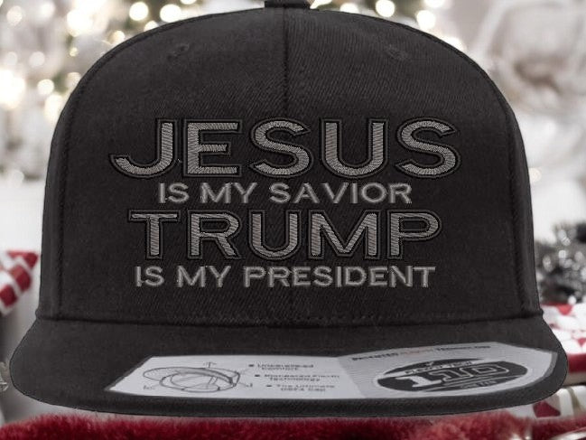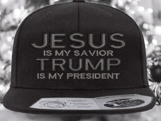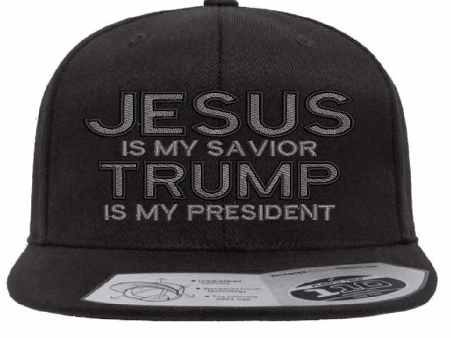 Jesus is my savior Trump is my President Adjustable 110F Flex Embroidered Black Flat Bill Bal Cap.