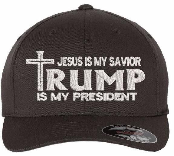 Jesus is my savior Trump is my President Gray Flex Fit Fitted Embroidered Hat
