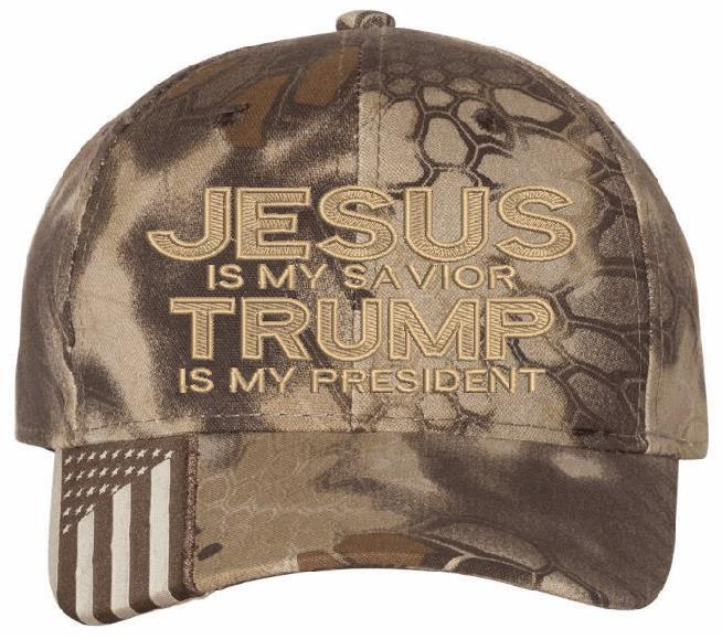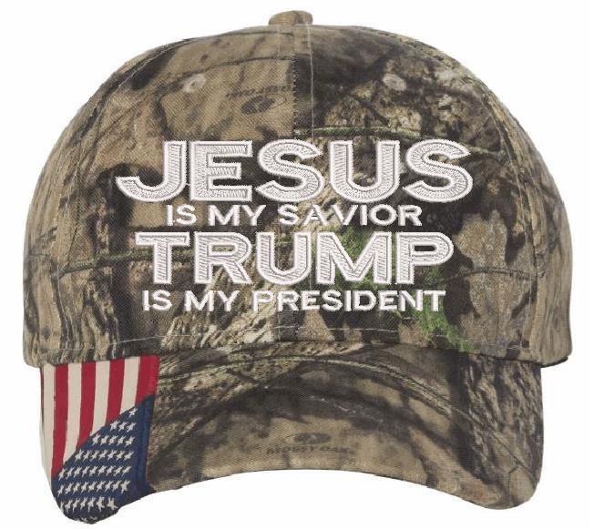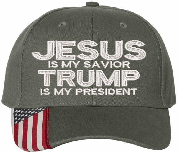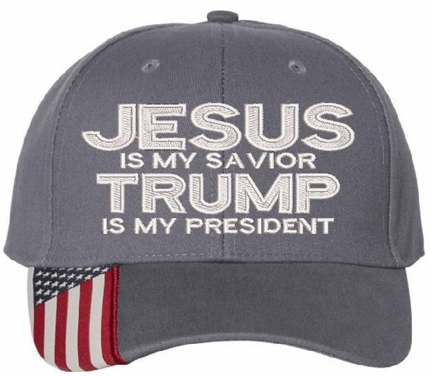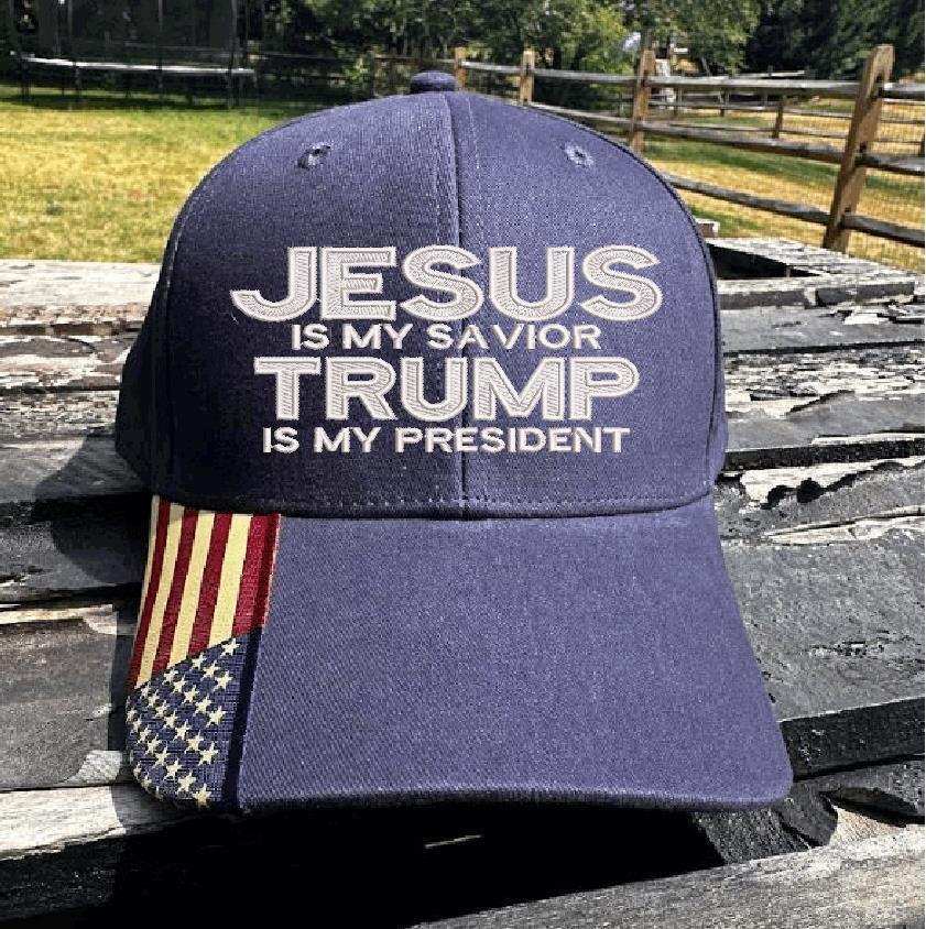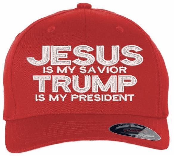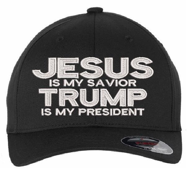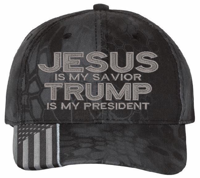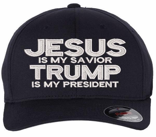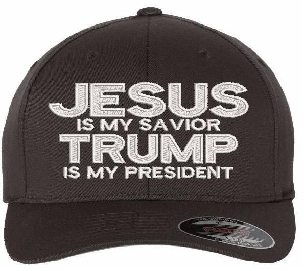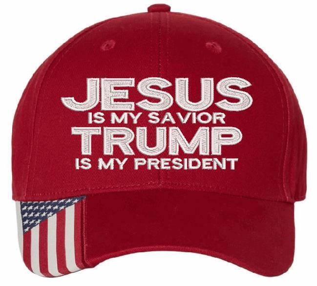Jesus is my savior Trump is my President Hat - USA300 Flag Brim or Flex Fit MAGA