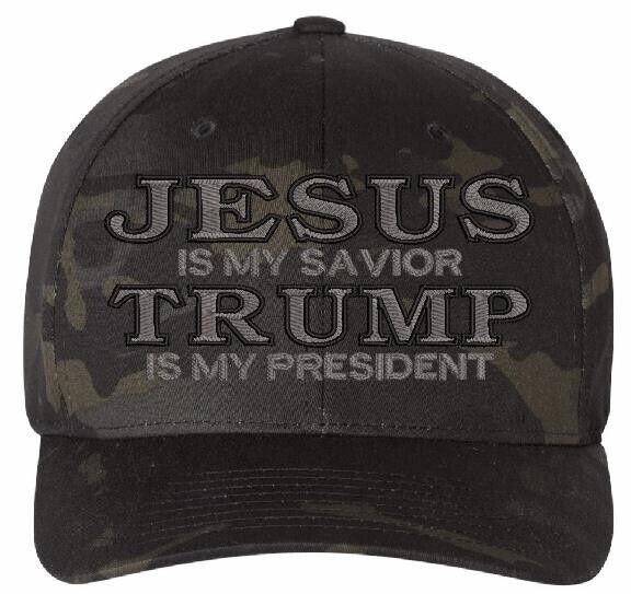 Jesus is my Savior Trump is my President Verion 3 Black Multicam Flex Fit Hat