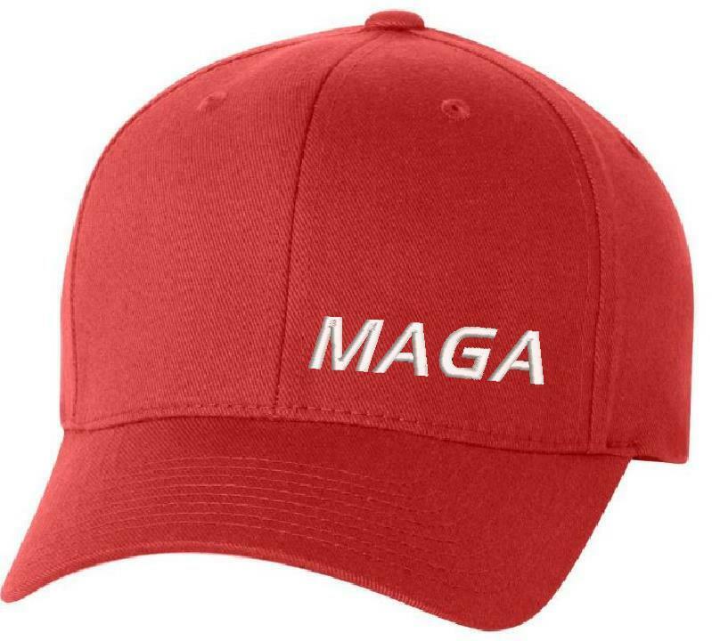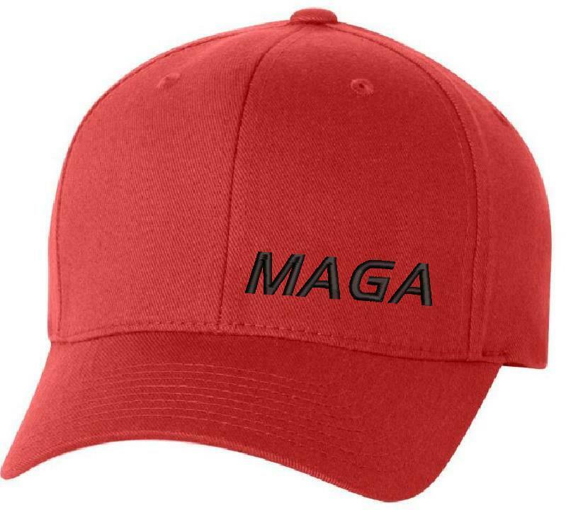 Make America Great Again Hat Flex Fit with Lower Side MAGA and flag on the back