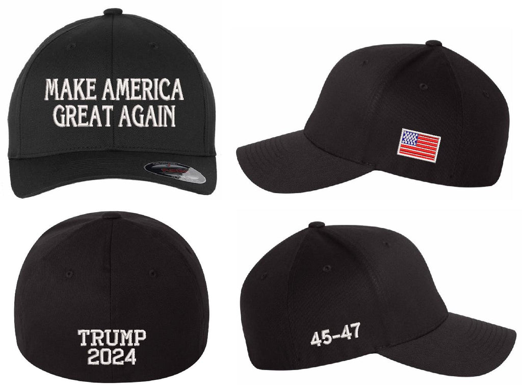 Make America Great Again Hat with Flag 45-47 and Trump 2024 Back Flex Fit Hat