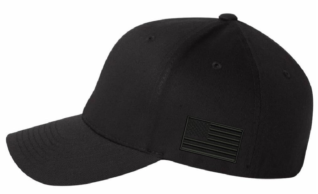 MAGA America Great Blackout Flex Fit Hat with Side USA Embroidered Flag