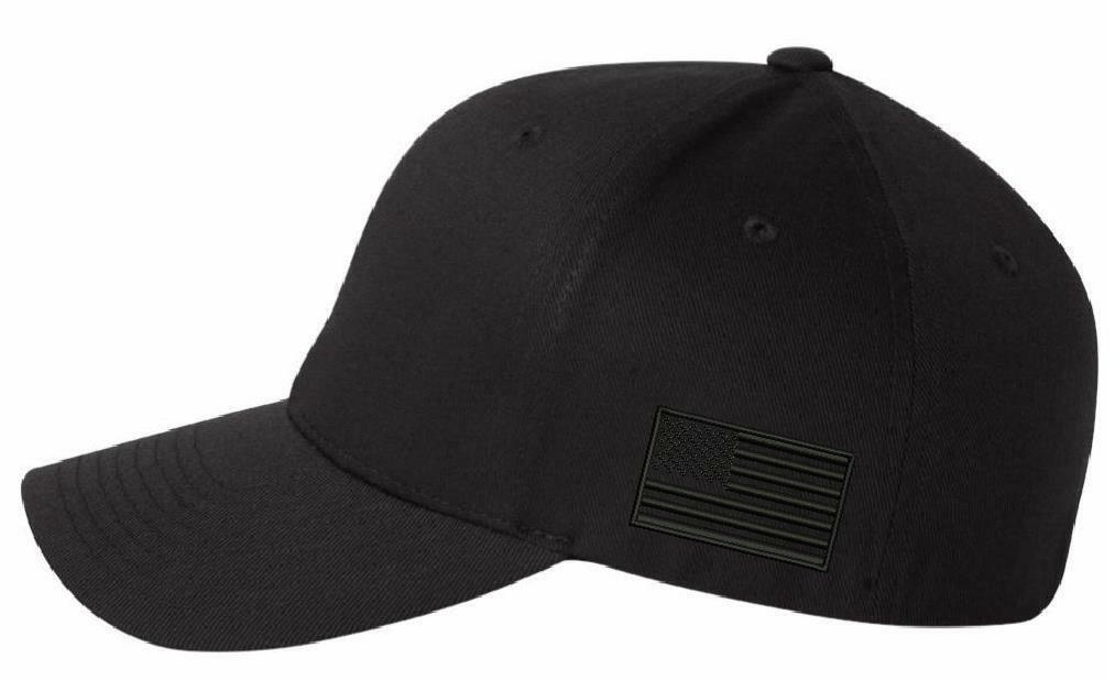 Great Again MAGA Flex fit or Adjustable Blackout Hat with side Flag