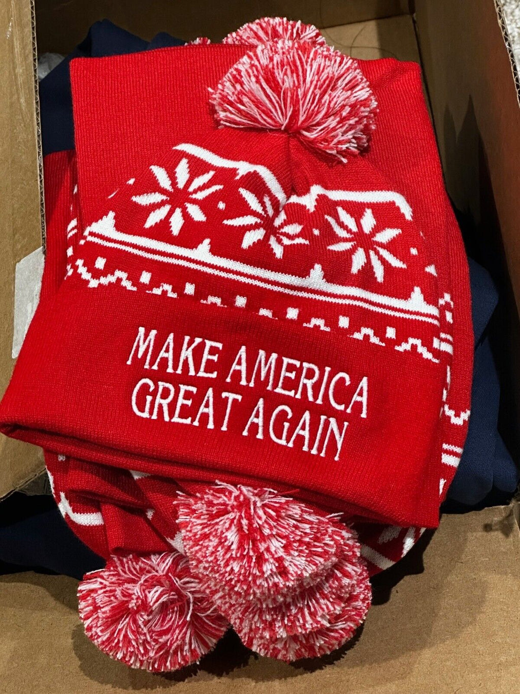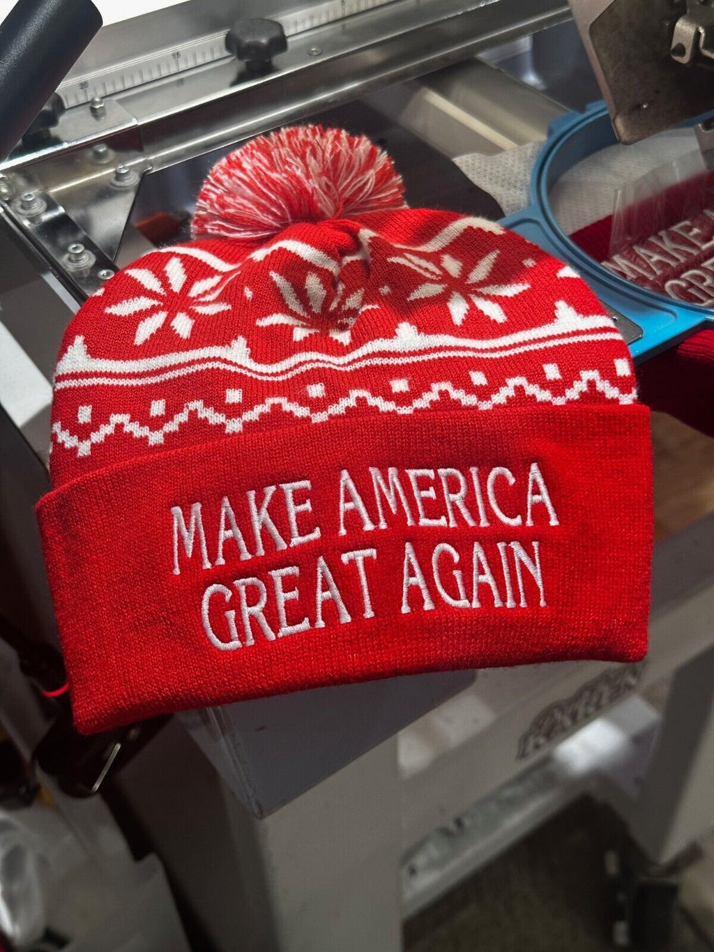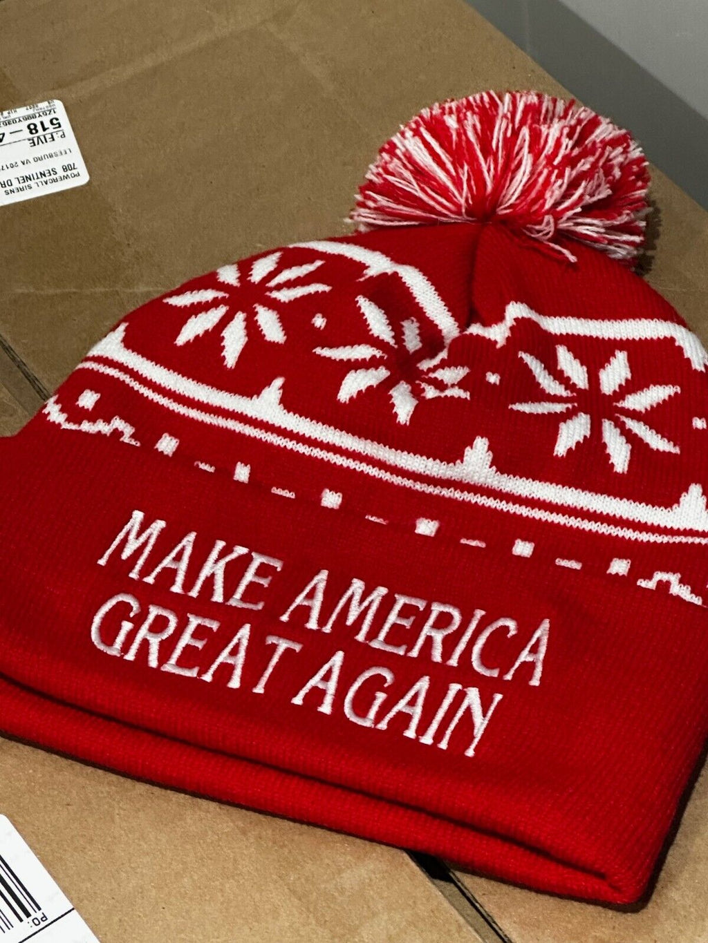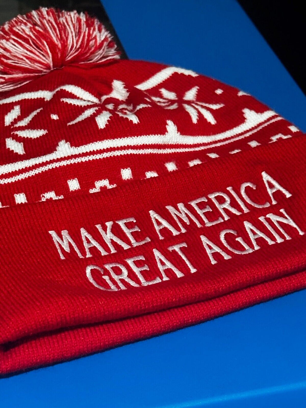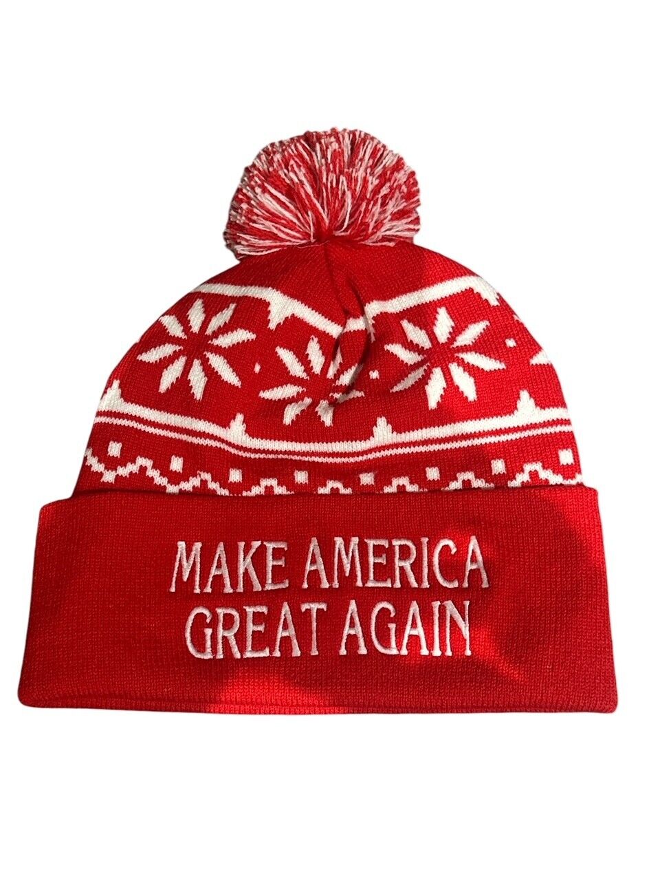 Make America Great Again Trump 2024 Winter Hat with RED Pom Pom Trump Hat
