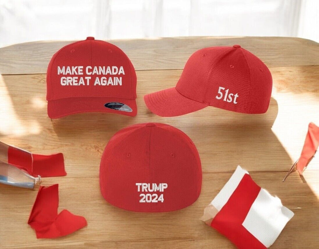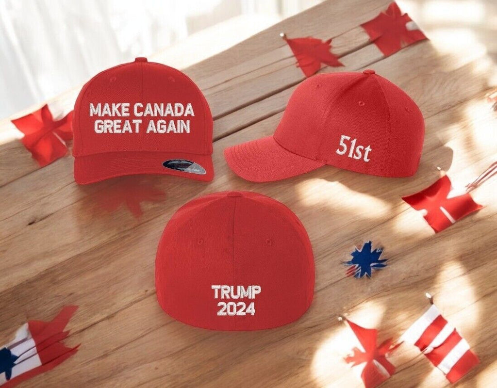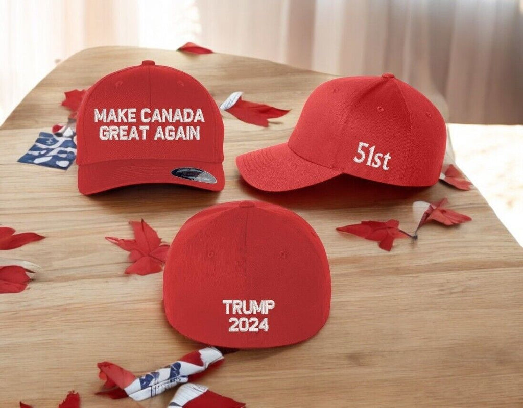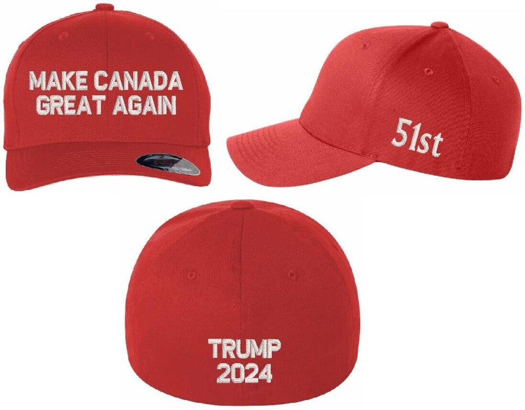 Make Canada Great Again Hat Flex Fit 6277 Red Embroidered hat with side and back