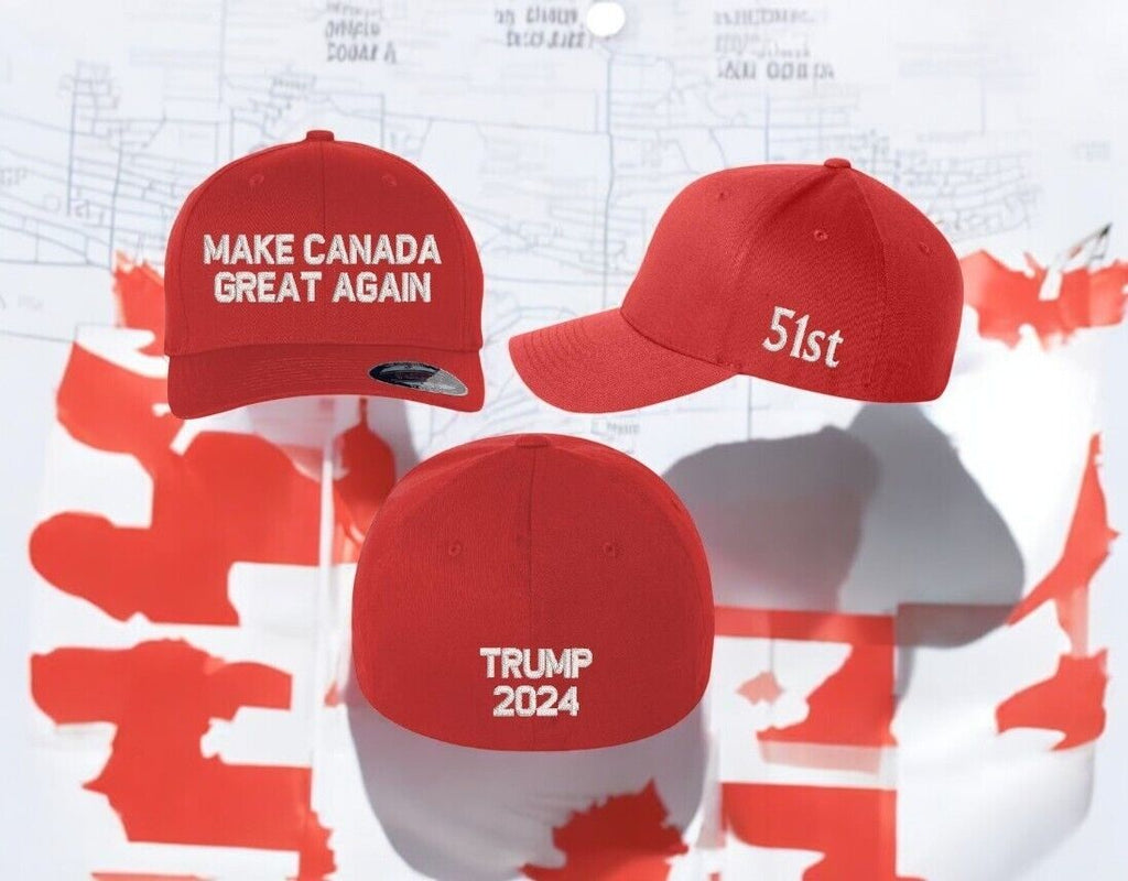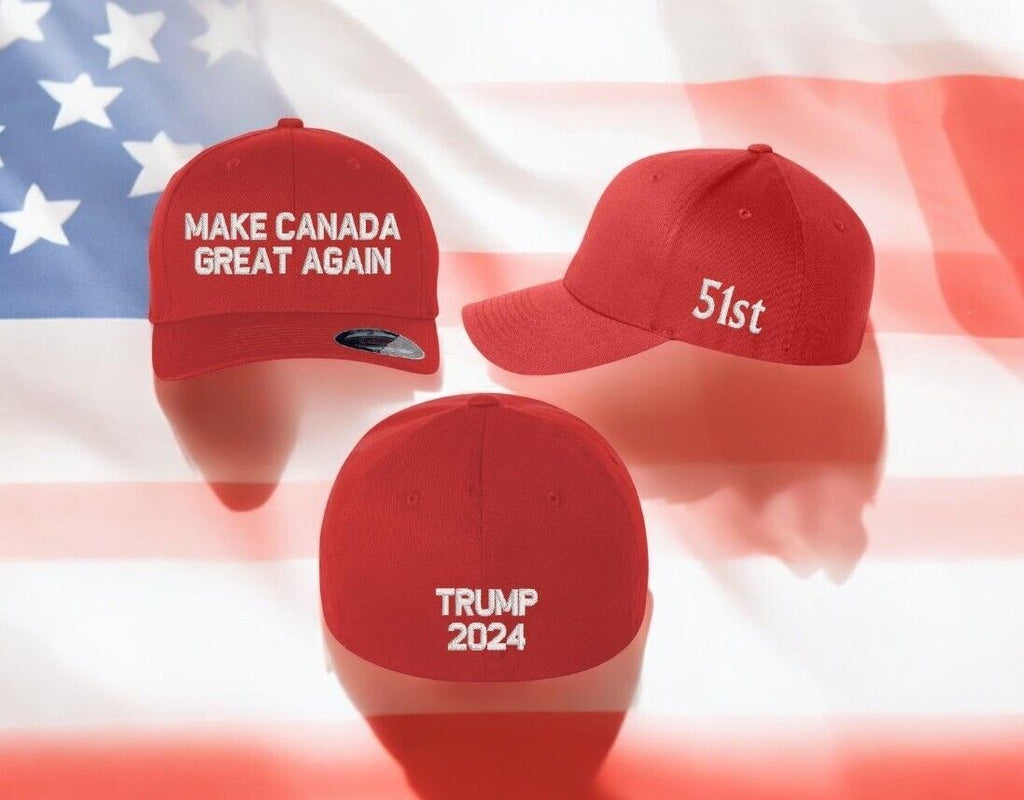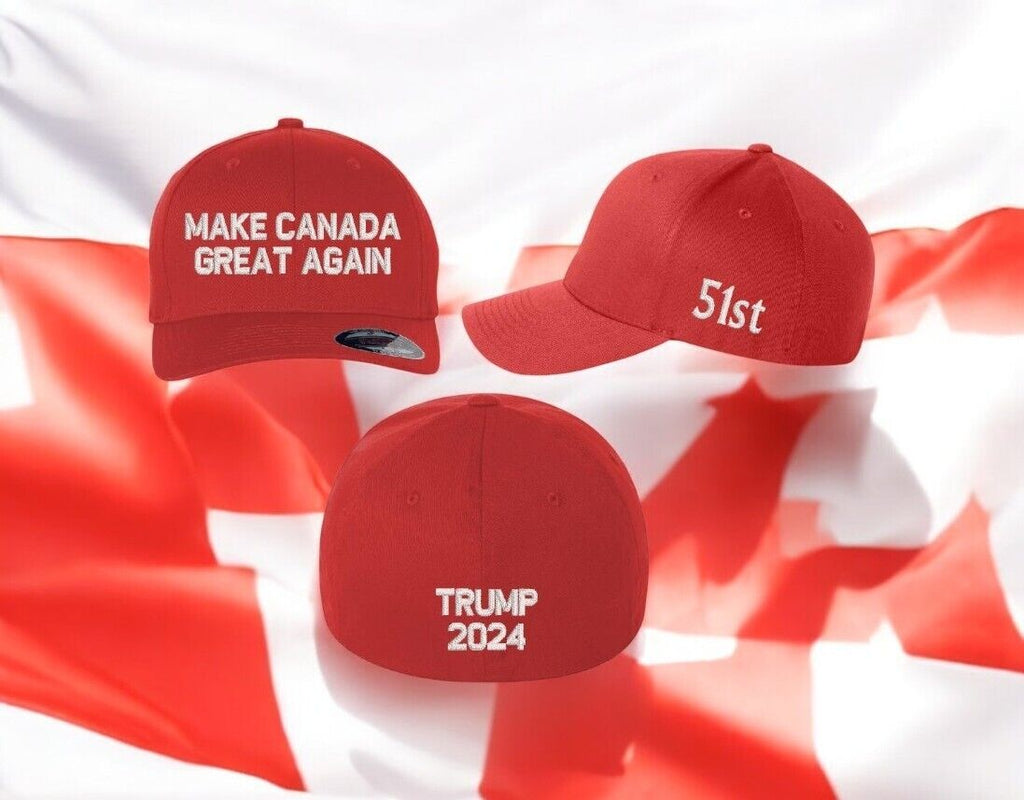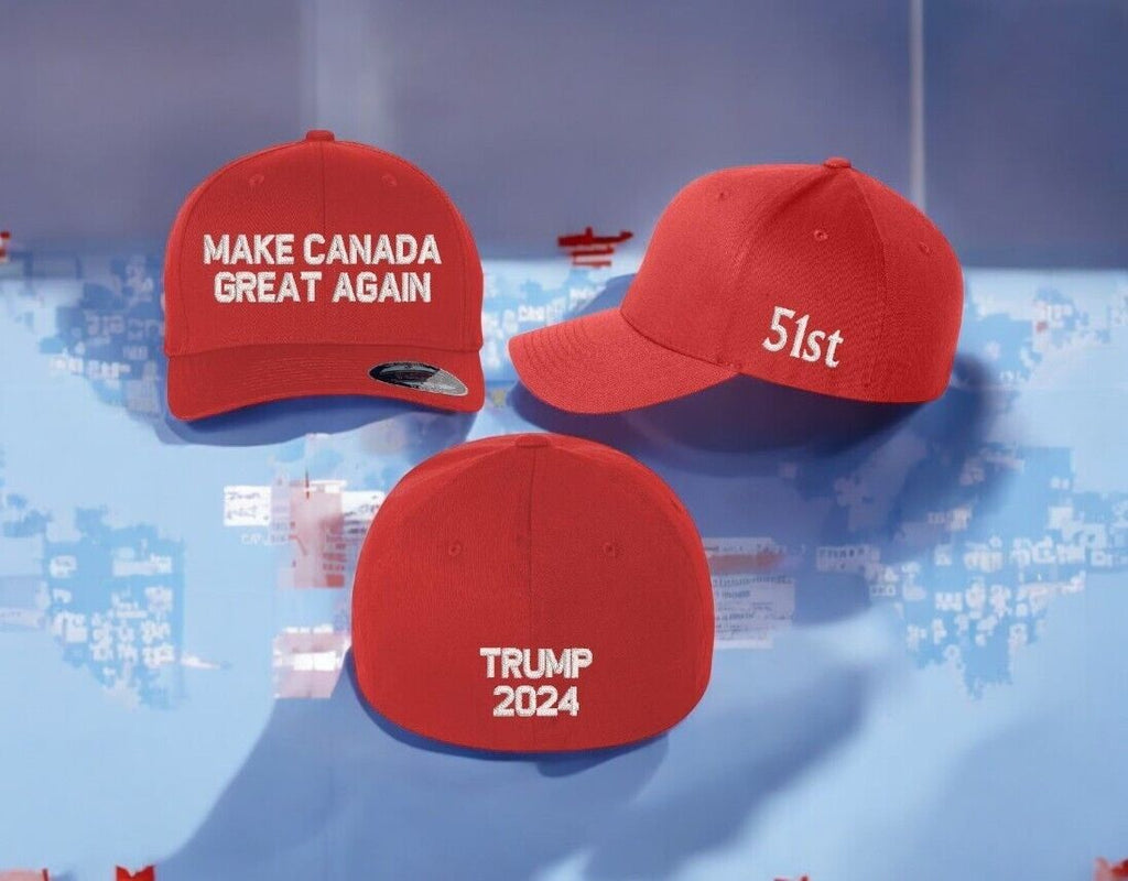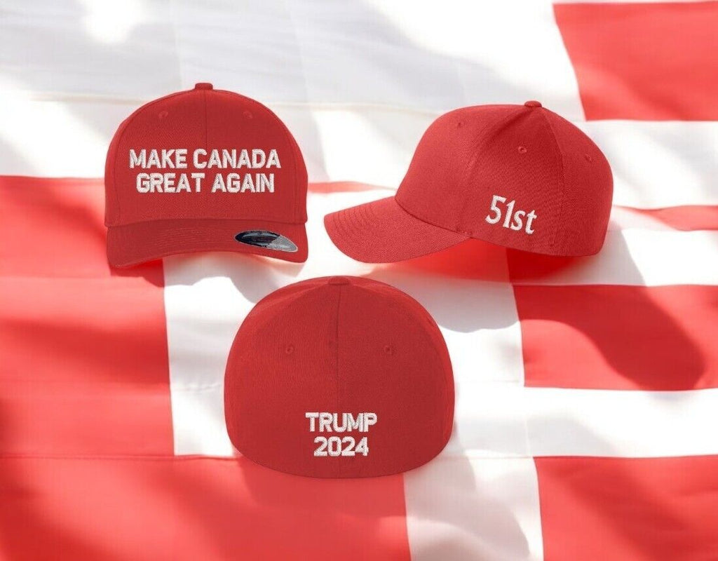 Make Canada Great Again Hat Flex Fit 6277 Red Embroidered hat with side and back