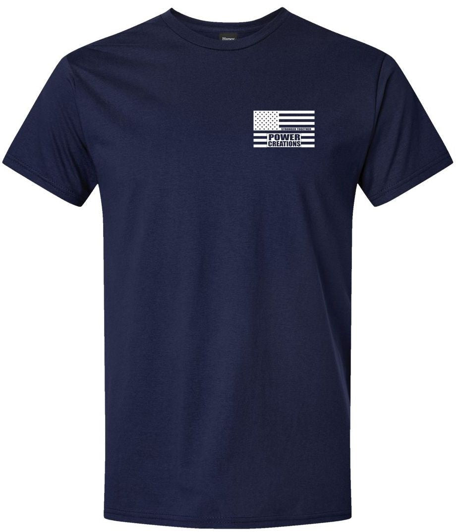 These custom printed shirts are part of our new "Axcess Shirt Designs" These are printed on the Hanes 498PT Short Sleeve T-shirts. Each shirt has the logo custom printed on the front, as well as the USA Power Creations Flag on the shoulder. This shirt is available is sizes from Small through 3X.
