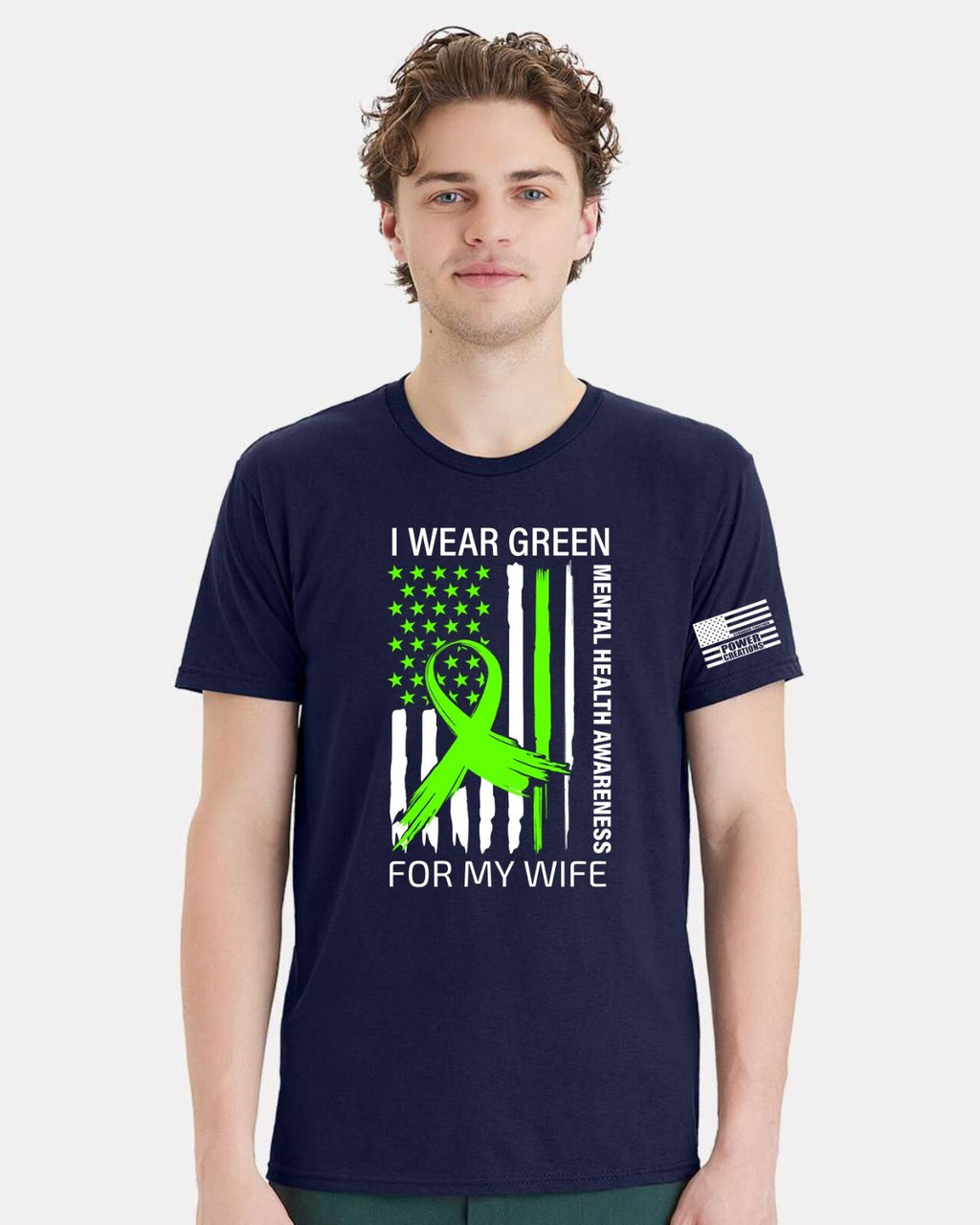 Mental Health Awareness Tshirt and FREE Sticker - Wear Green for my Wife design