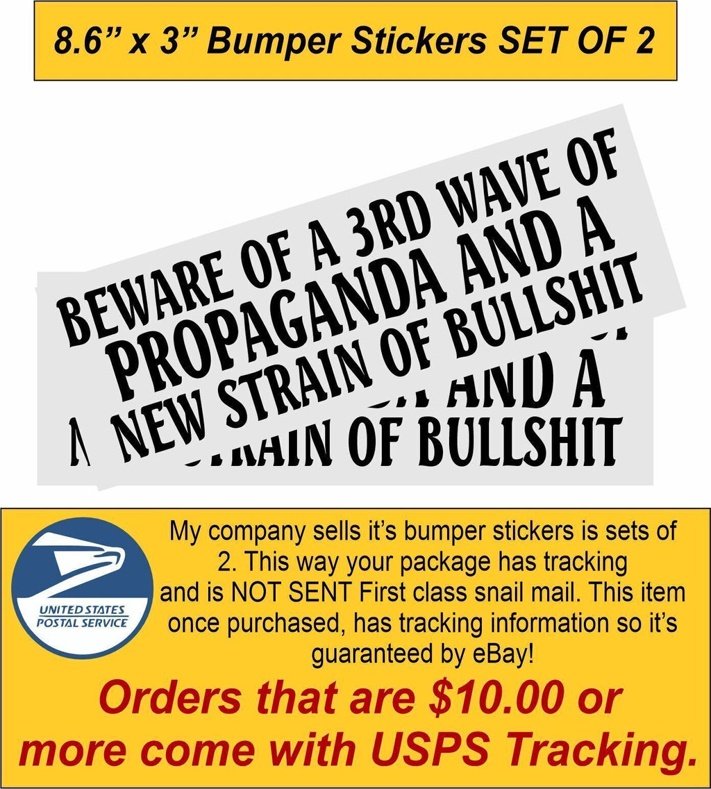 Political Bumper Sticker Beware of 3rd wave of Bullsh*t SET OF 2 - 8.6" x 3"