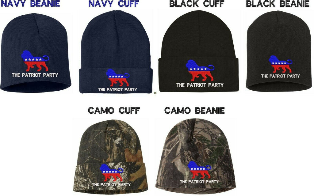 The Patriot Party Lion Custom Embroidered WINTER HAT Beanie or Cuff Knit Hat