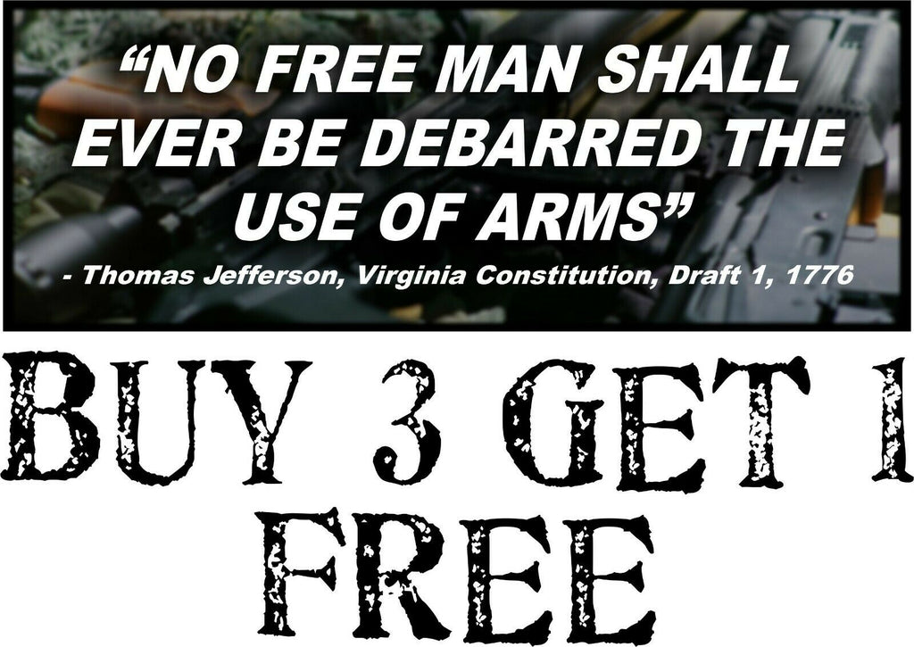 Thomas Jefferson 2nd Amendment "No Free Man" Bumper Sticker 8.7" x 3" Decal