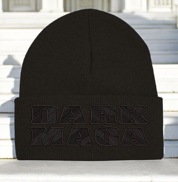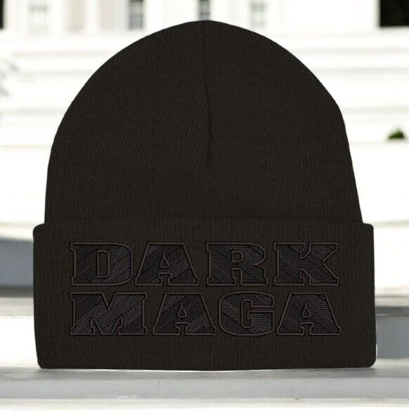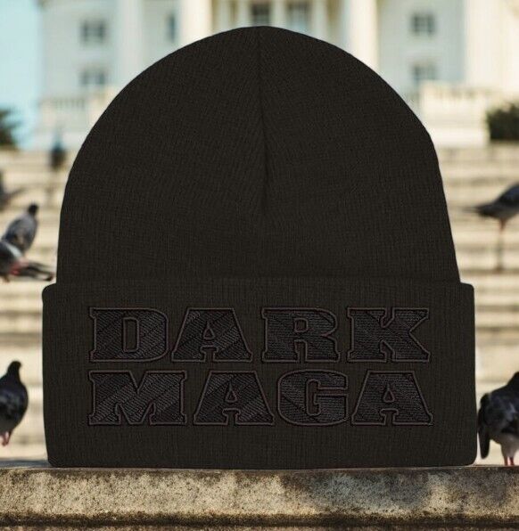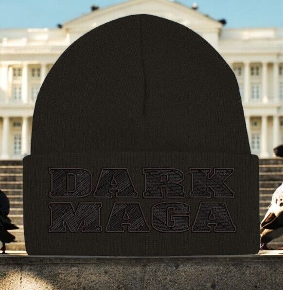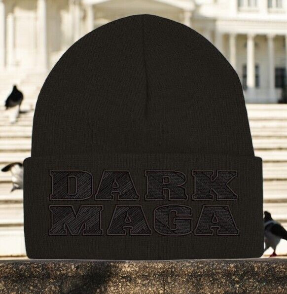 Trump 2024 DARK MAGA CHEVRON STYLE BLACKOUT Black Winter Hat - Black Cuff Beanie