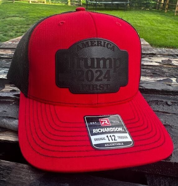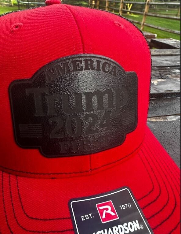 Trump 2024 Hat America First Blackout Leather Badge Hat