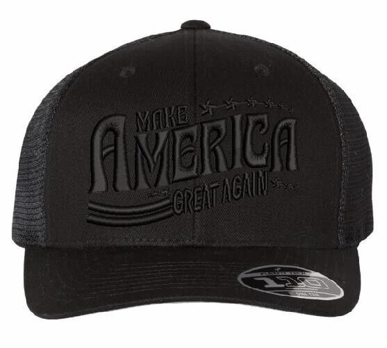 Trump 2024 Hat Arched MAGA Flex Fit 110 Snapback Adjustable Hat BLACKOUT Version