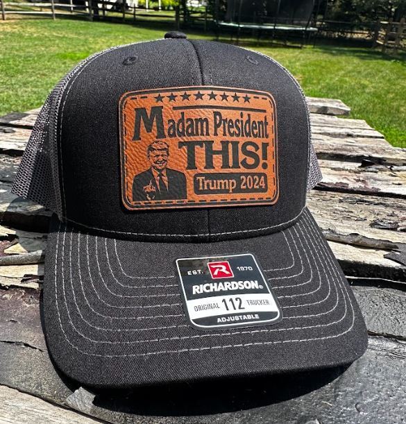 Trump 2024 Hat - Madam President THIS Leather Badge Richardson Charcoa/Black Hat