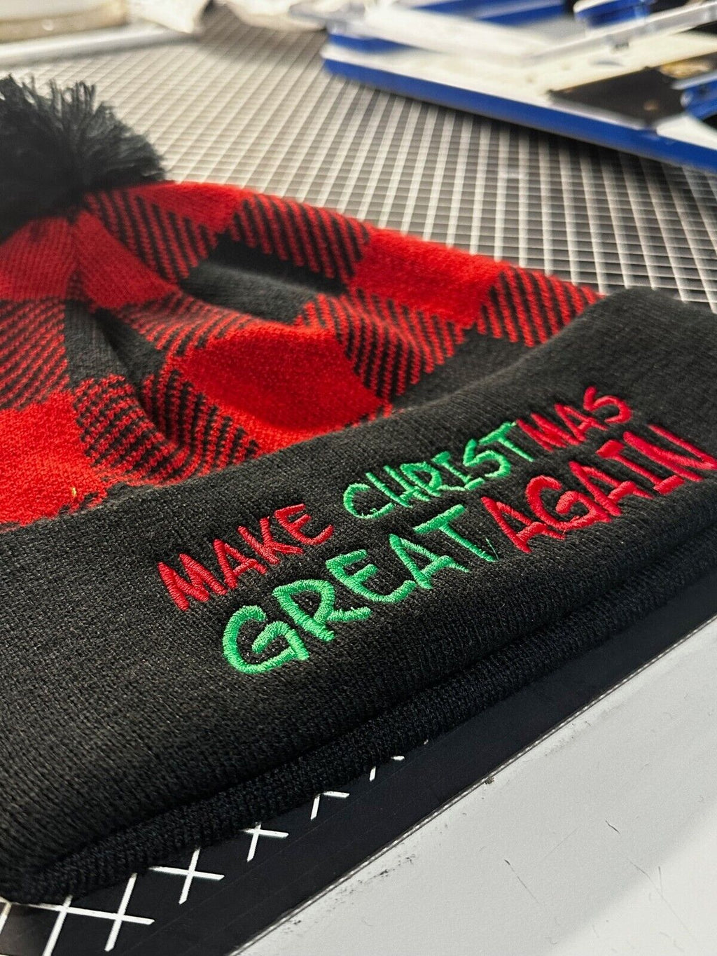 Trump 2024 Hat Make Christmas Great Again Buffalo Plaid Winter Hat with Pom Pom