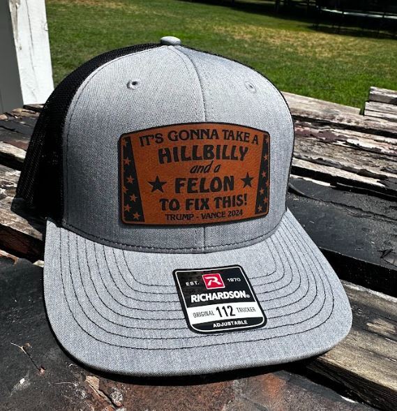 Trump 2024 JD Vance Hillbilly Felon Leather Badge Hat Richardson 112 Trump Vance