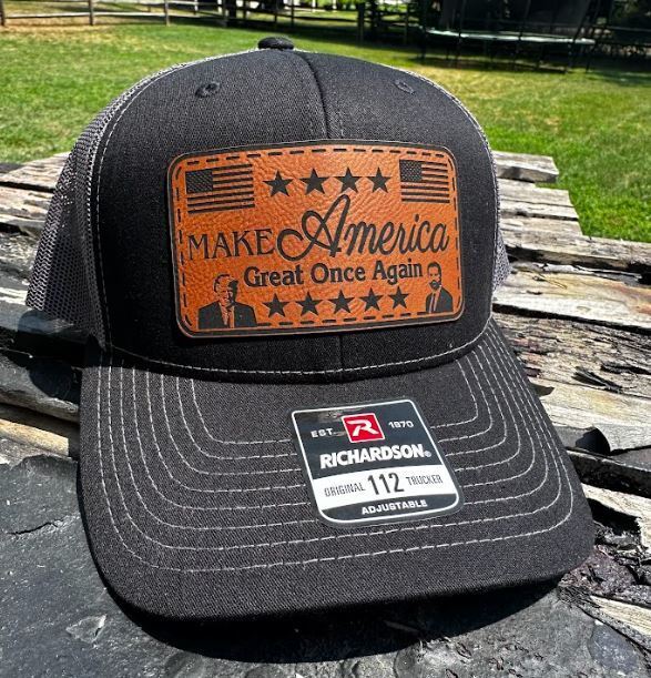 Trump 2024 Make America Great Again Leather Badge Richardson Charcoa/Black Hat