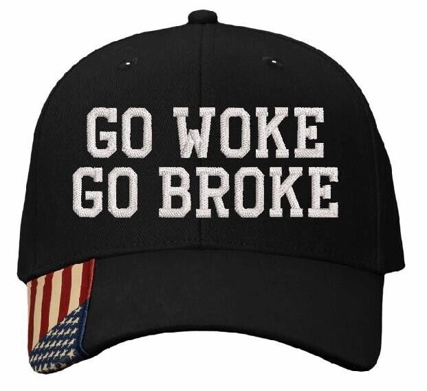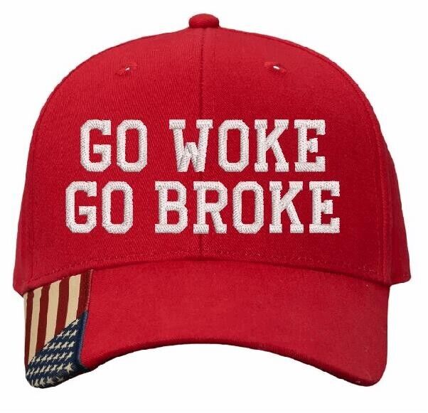 Trump 2025 Hat GO WOKE GO BROKE Adjustable Hat with Flag Brim Trump 2024 Hat