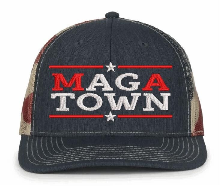 Trump 2025 Hat - MAGA TOWN Embroidered Adjustable Old Glory Trump 2025 Hat
