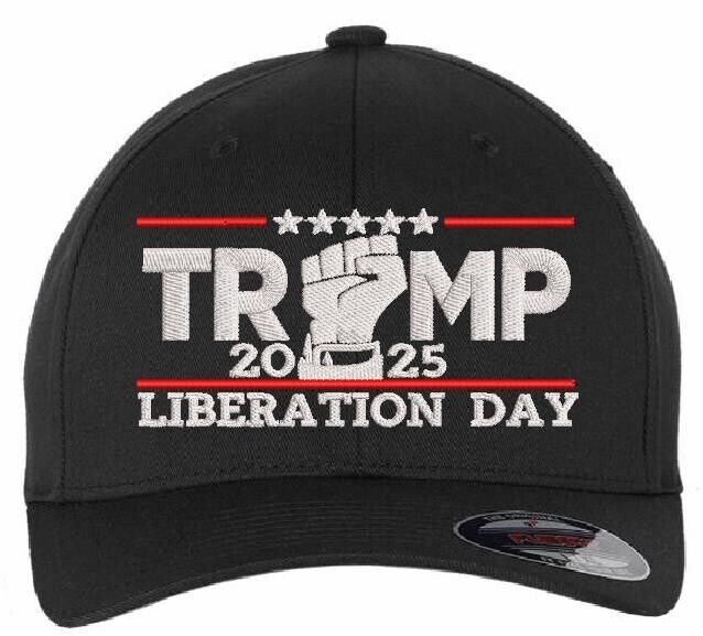 Trump 2025 LIBERATION DAY Flex Fit Fitted BLACK Embroidered Hat Trump Vance