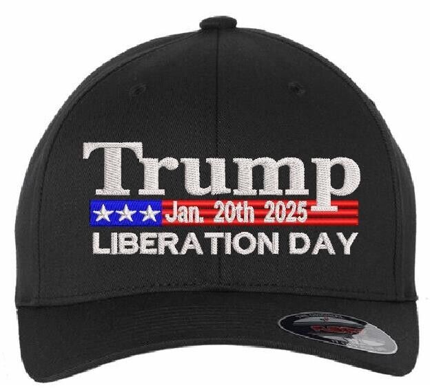 Trump 2025 LIBERATION Flex Fit Fitted BLACK Embroidered Hat Trump Vance 2025